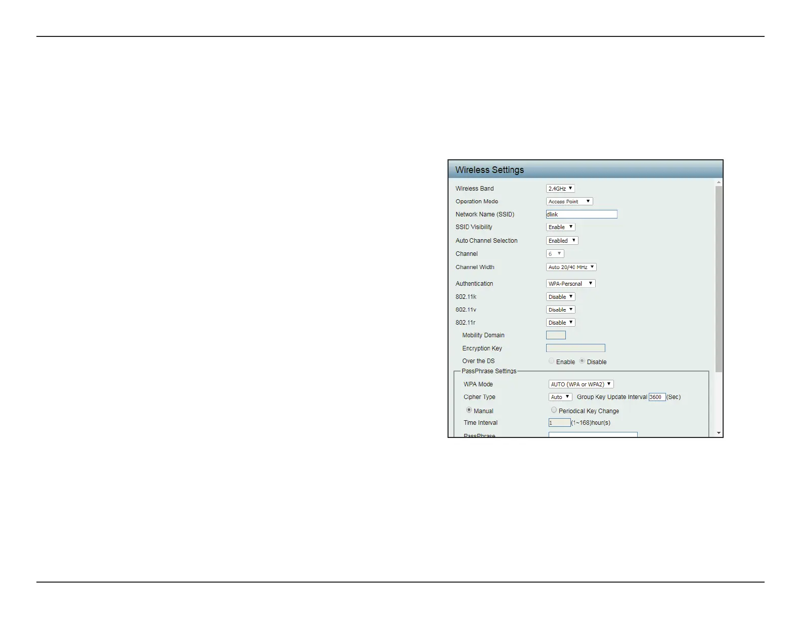 802.11r Click the drop-down menu to enable the