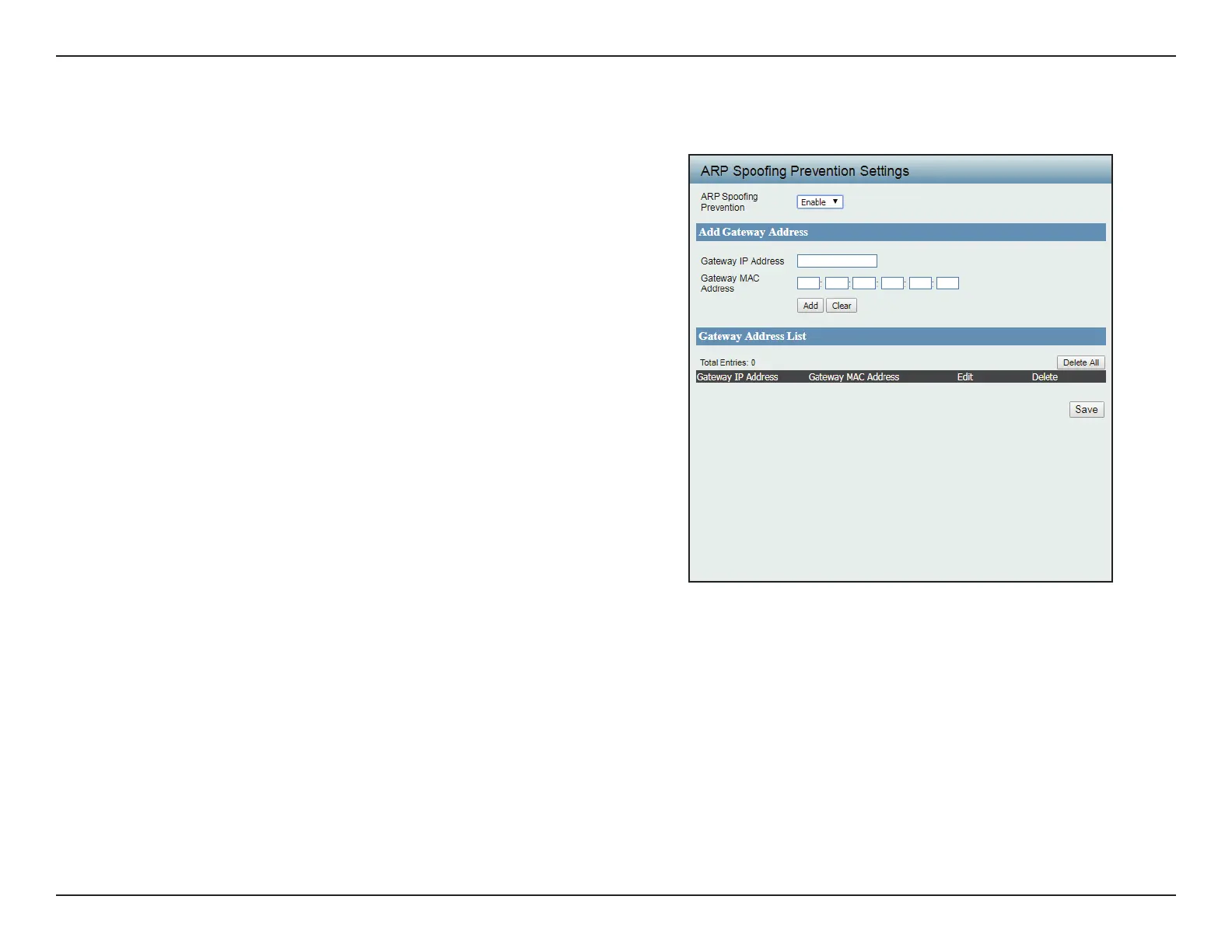 The ARP Spoong Prevention feature allows users to add IP/MAC address mapping to prevent ARP spoong attack.