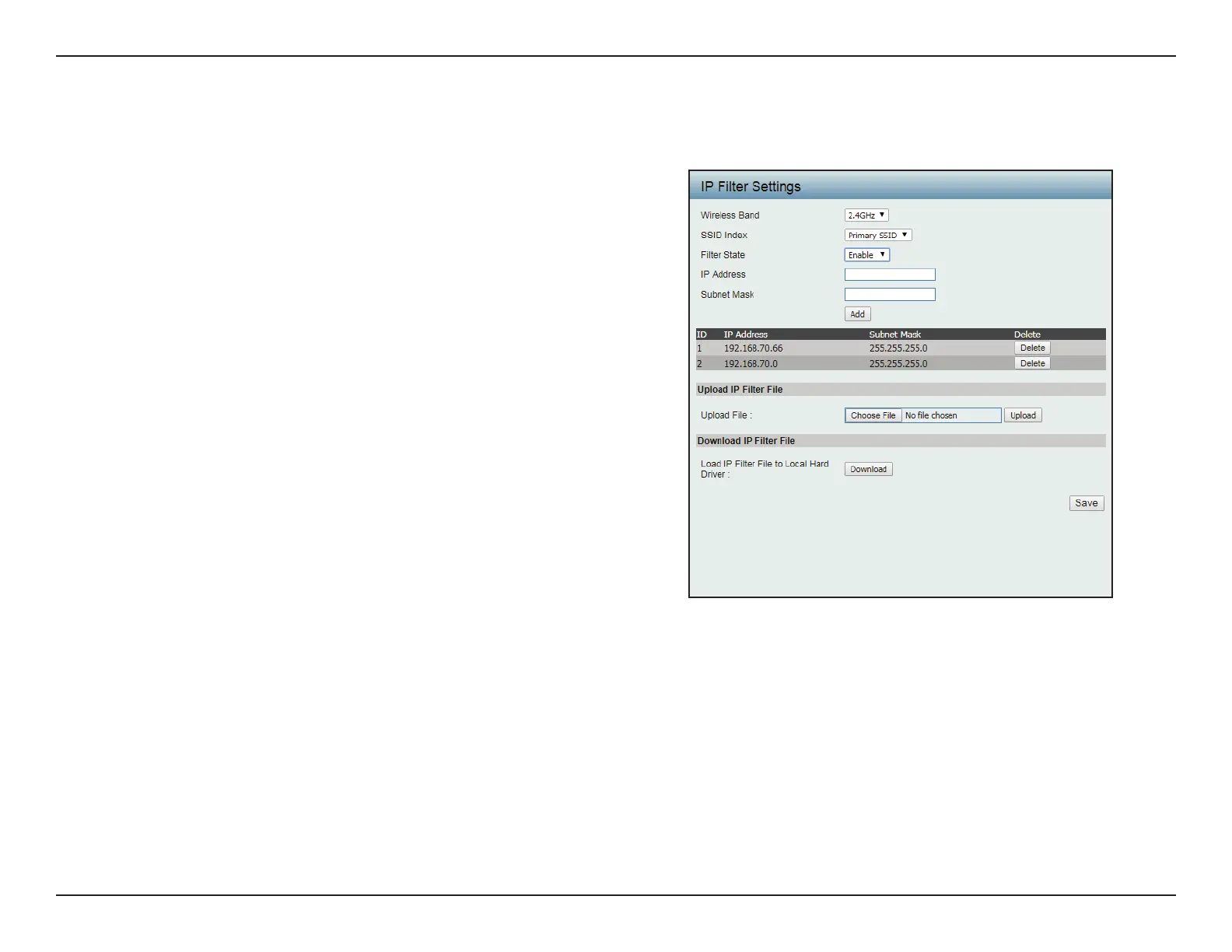 Upload IP Filter File To upload a IP lter list le, click Choose File