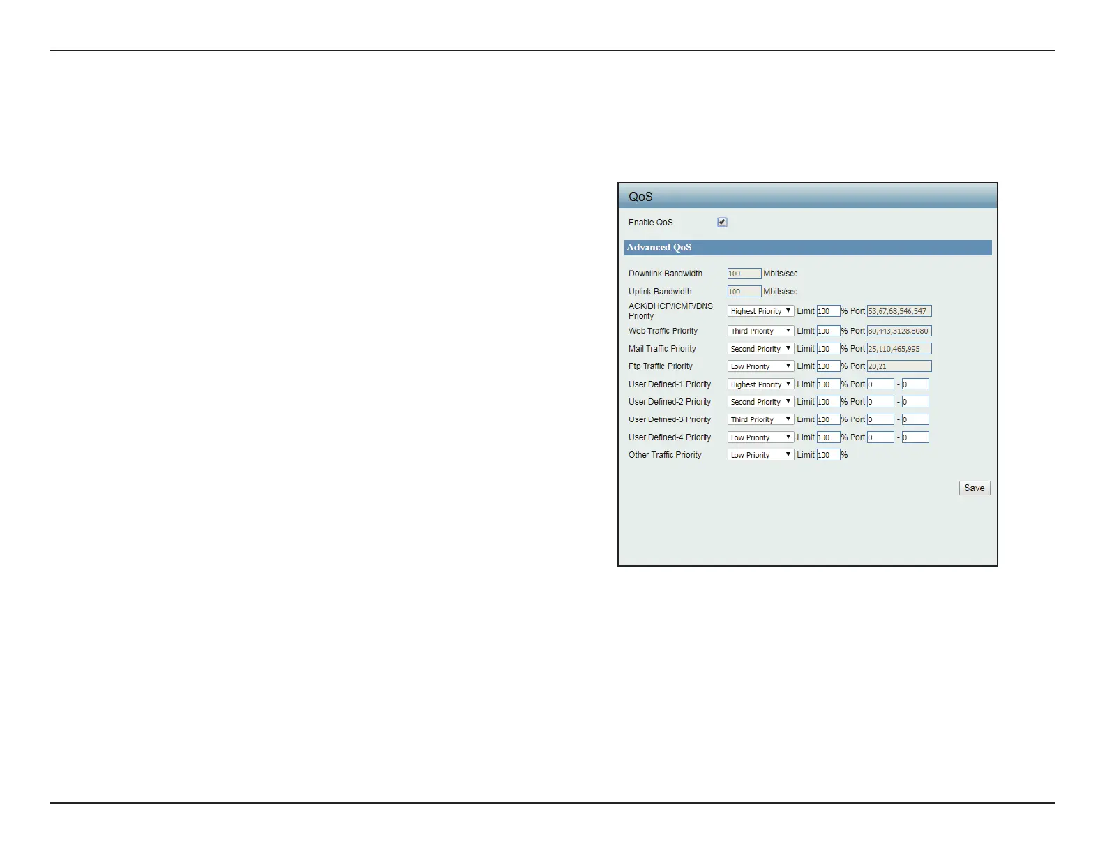 Enable QoS Check the box to allow QoS to prioritize trac.