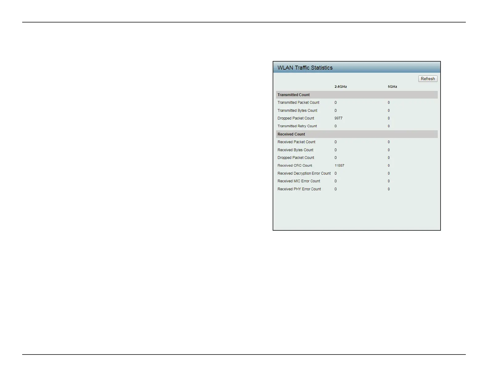 Refresh Click Refresh to update the WLAN trac