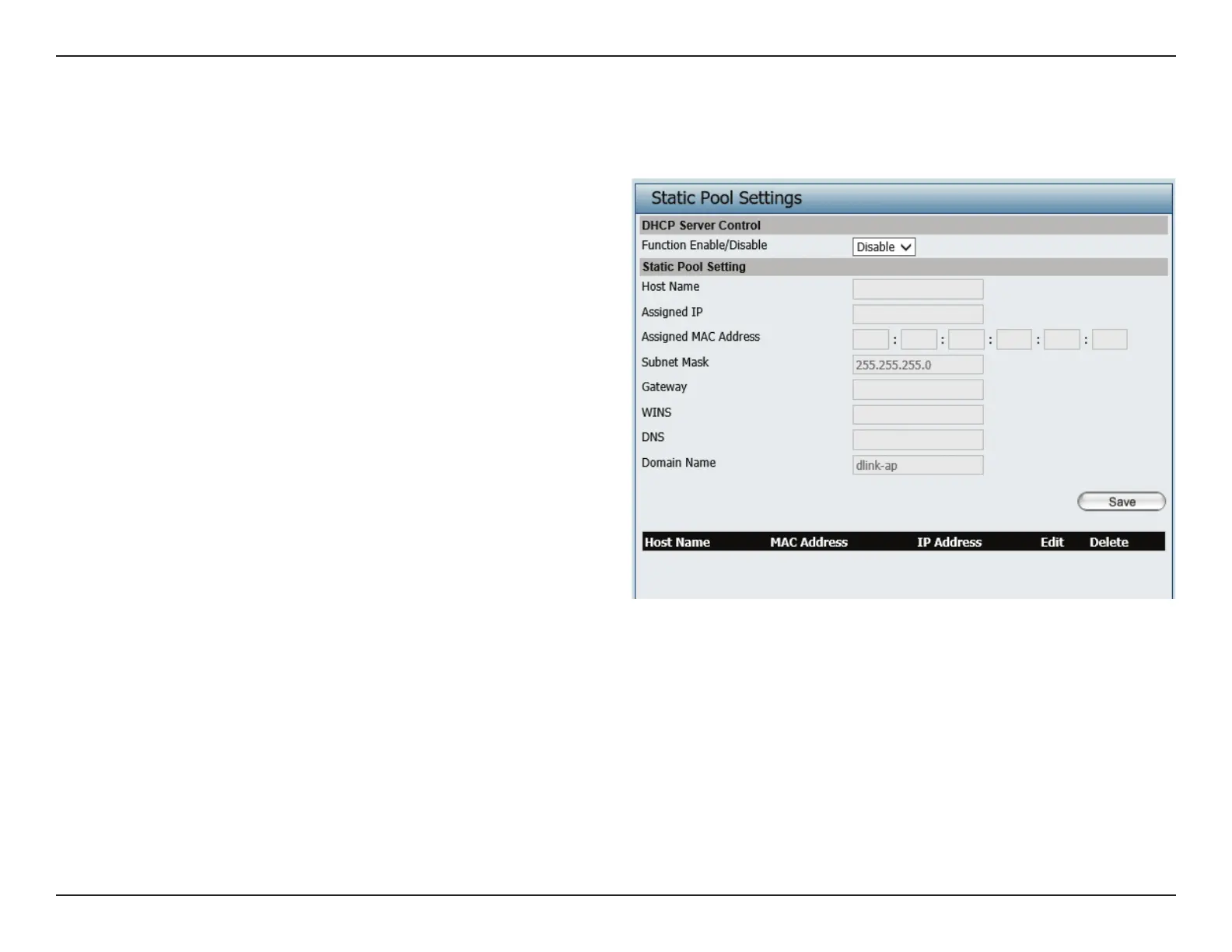 The DHCP address pool denes the range of IP addresses that can be assigned to stations on the network. A static pool allows specic wireless