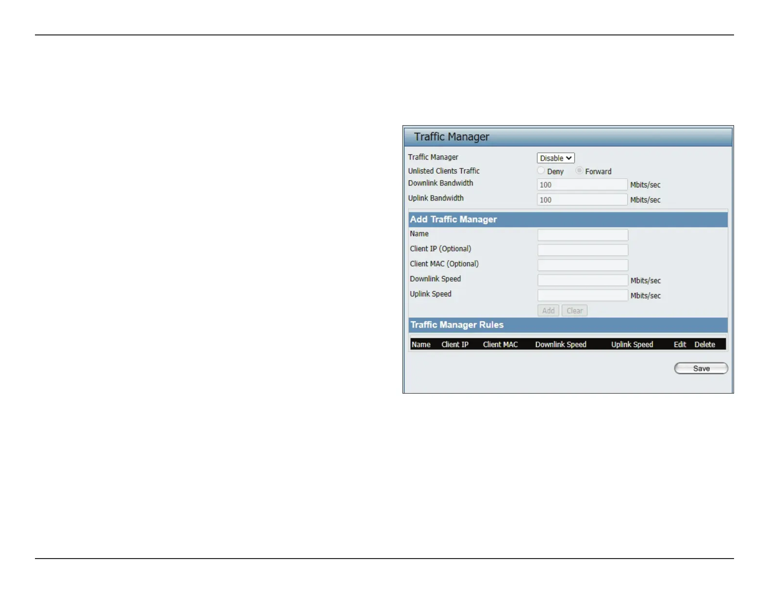 downlink/ uplink speeds for new trac manager rules. Click the Save button to let your changes take eect.