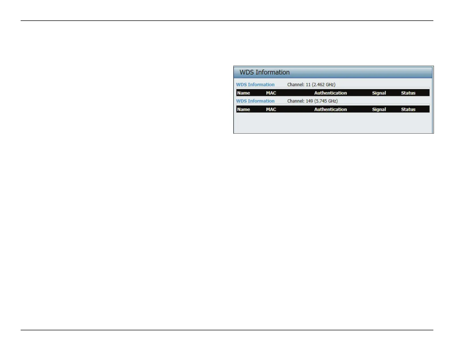 This page displays the access point’s SSID, MAC, band, authentication method, signal strength, and status for the DAP-X2810’s Wireless