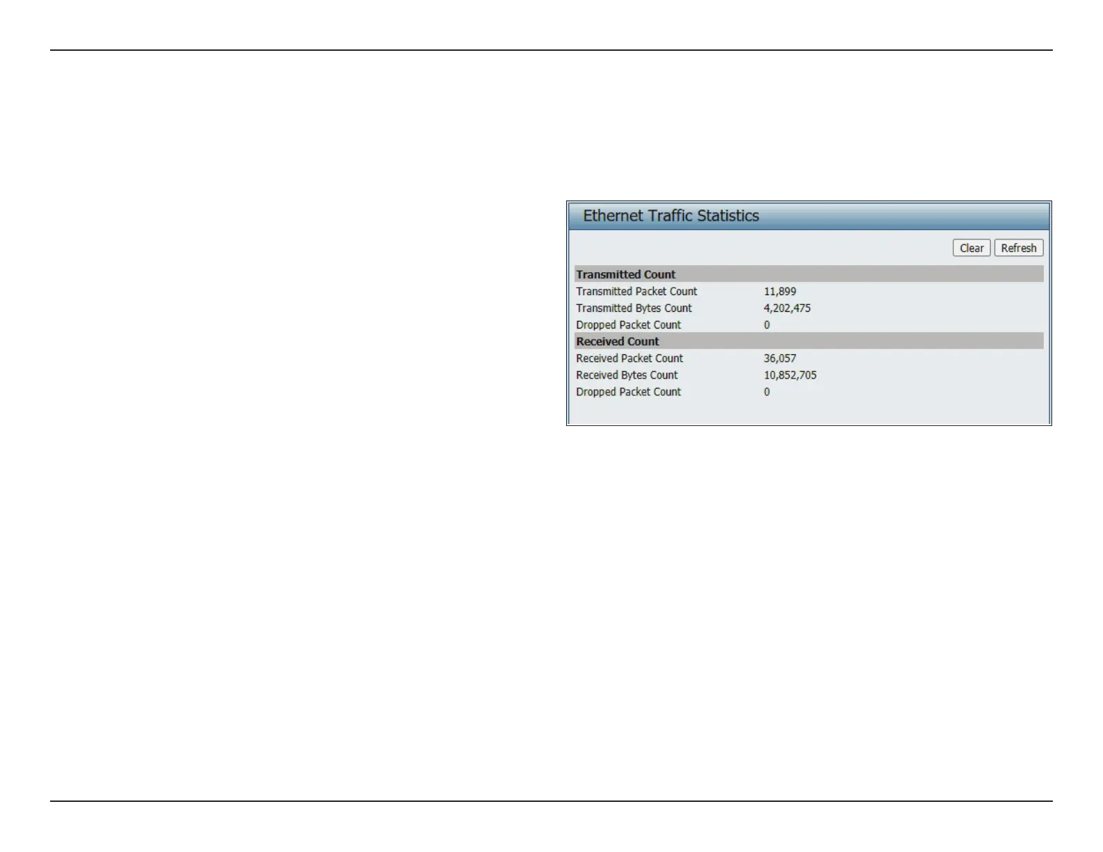 Ethernet Trac Statistics: This page displays transmitted and received