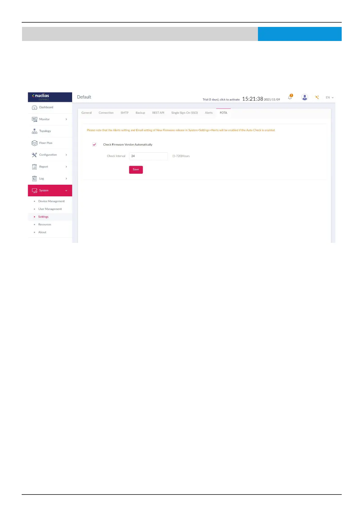 automatic rmware check. Once Auto Check is enabled, you can then set a check interval between 1-720 hours.