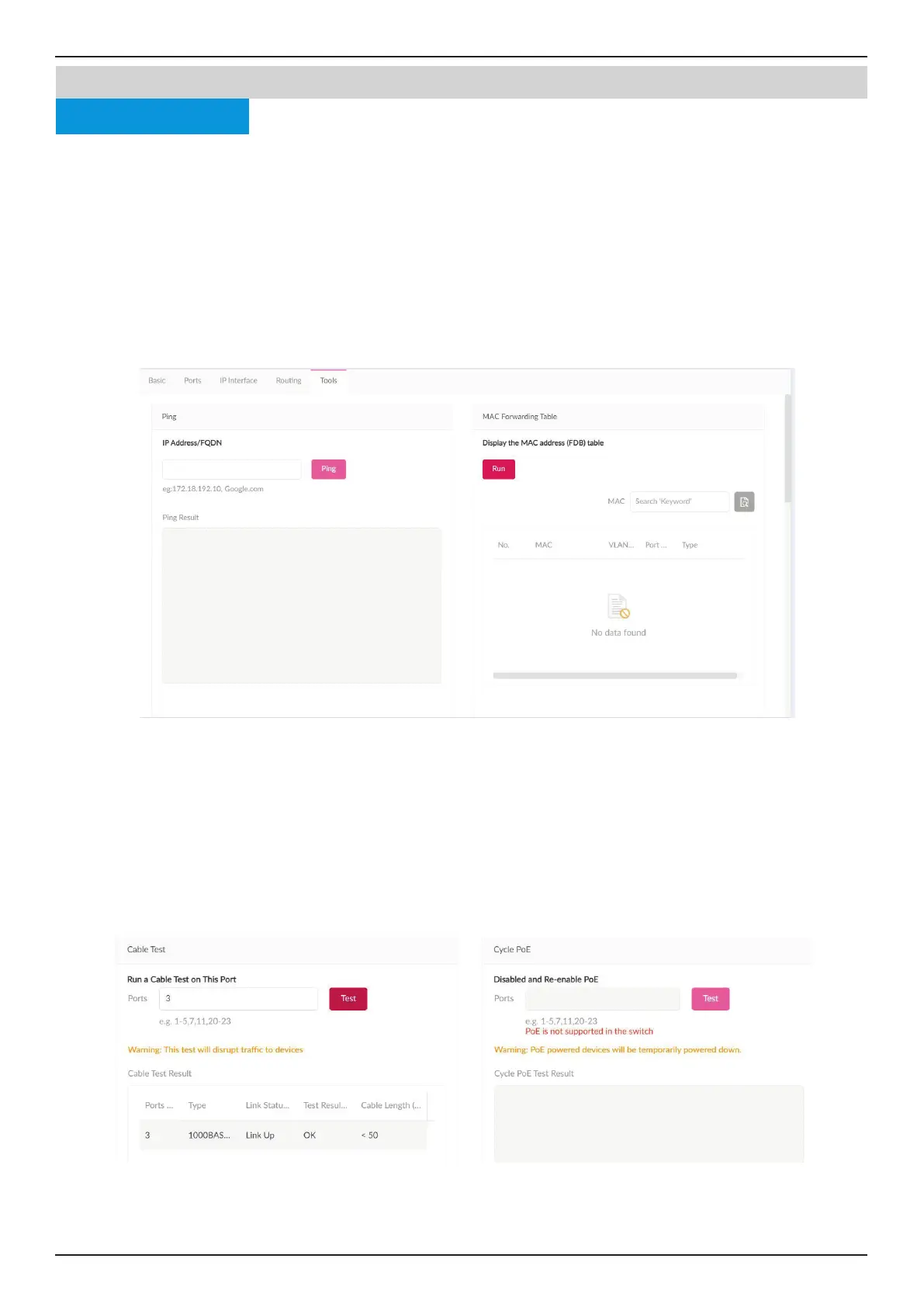 Cycle PoE, MAC Forwarding Table, and Copy Conguration to Other Device. Note that the tools are disabled when your