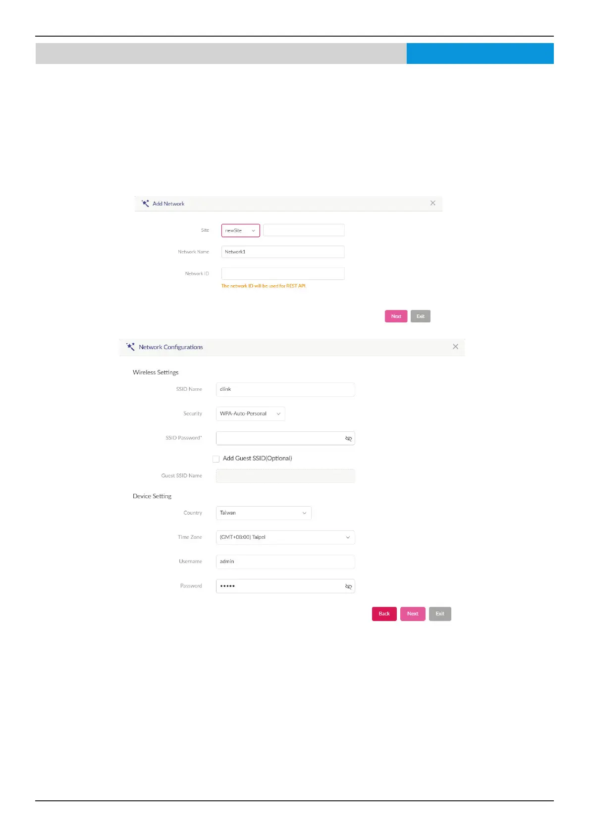 Next to continue. To return to the previous page, click Back or click Exit to discontinue the conguration process. The Network