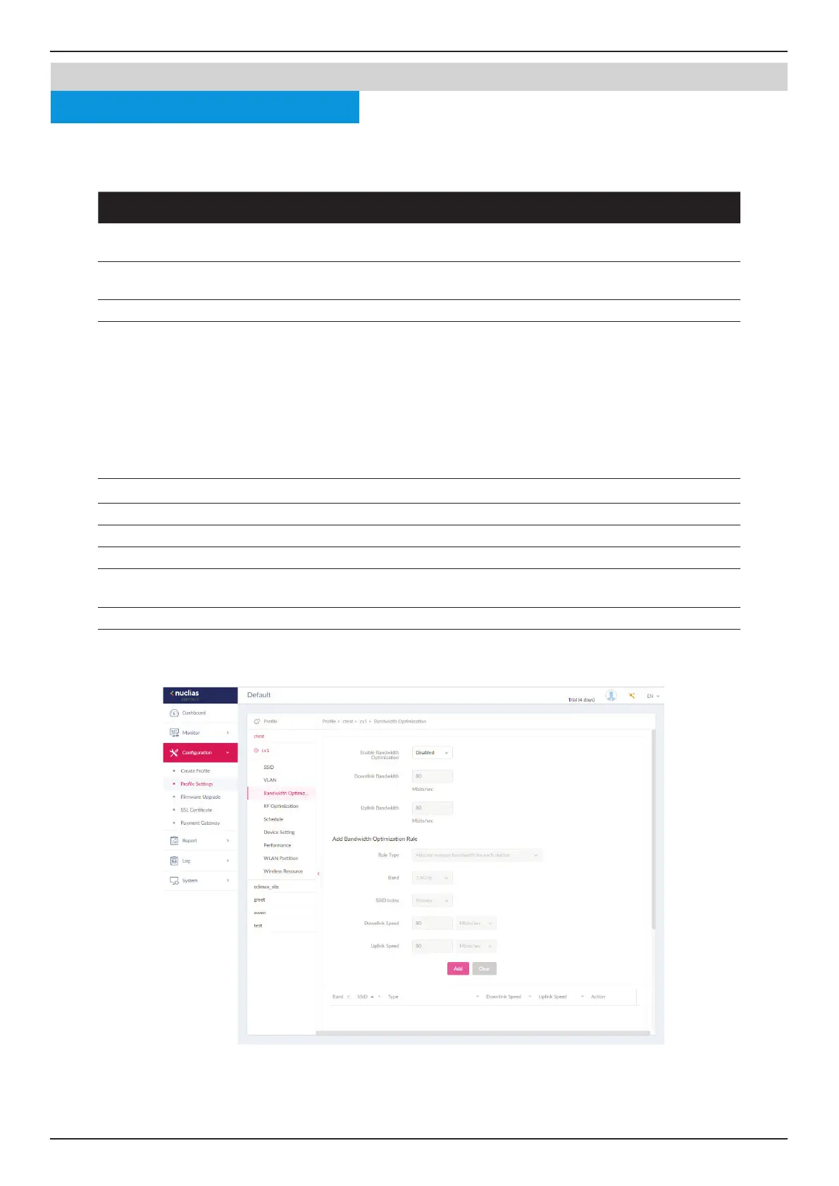 The Bandwidth Optimization page displays the congurable settings to optimize available bandwidth. Navigate to Conguration