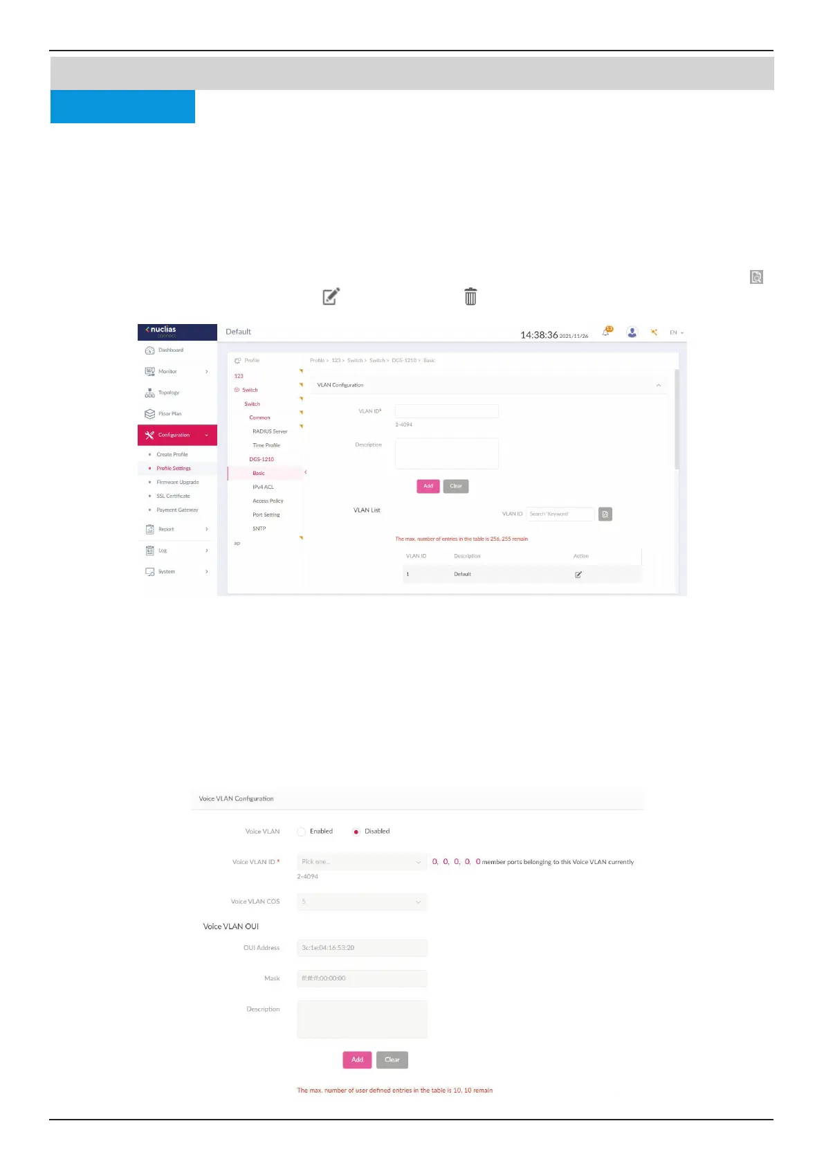 In this section, users can view and congure global Voice VLAN settings and Voice VLAN OUI( Organizationally Unique Iden-