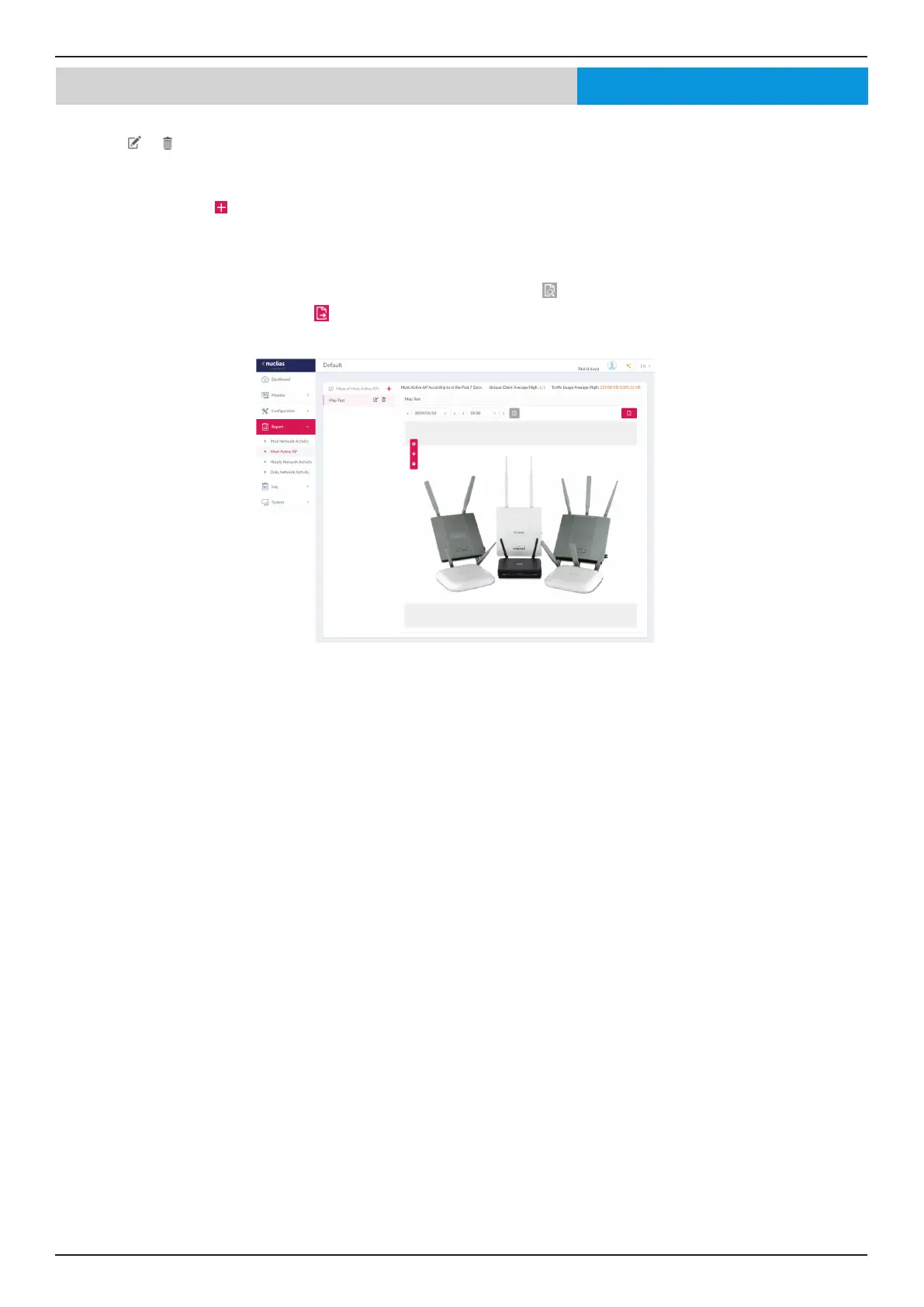 To view a specic client’s trac usage, select a client from the most active APs column. Available maps can be edited or deleted