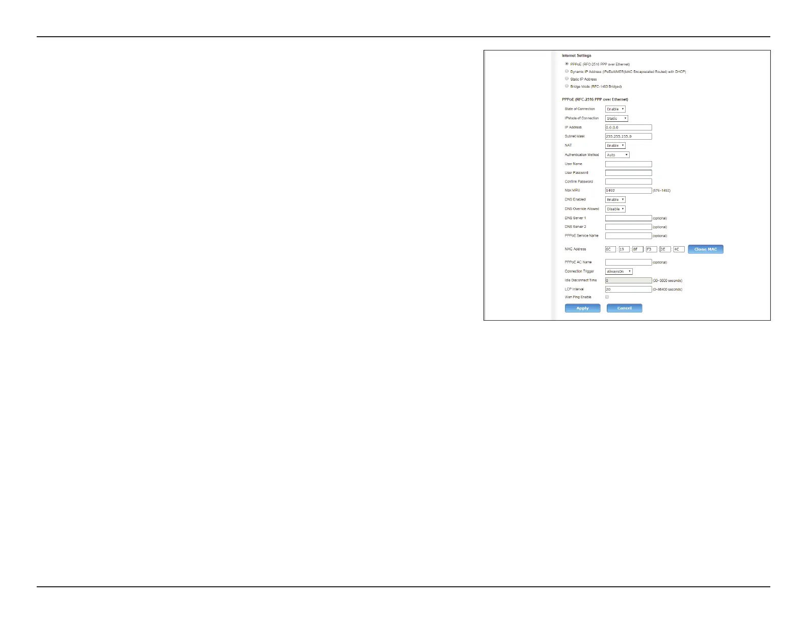 MAC Address: The default MAC address is set to the WAN port’s physical