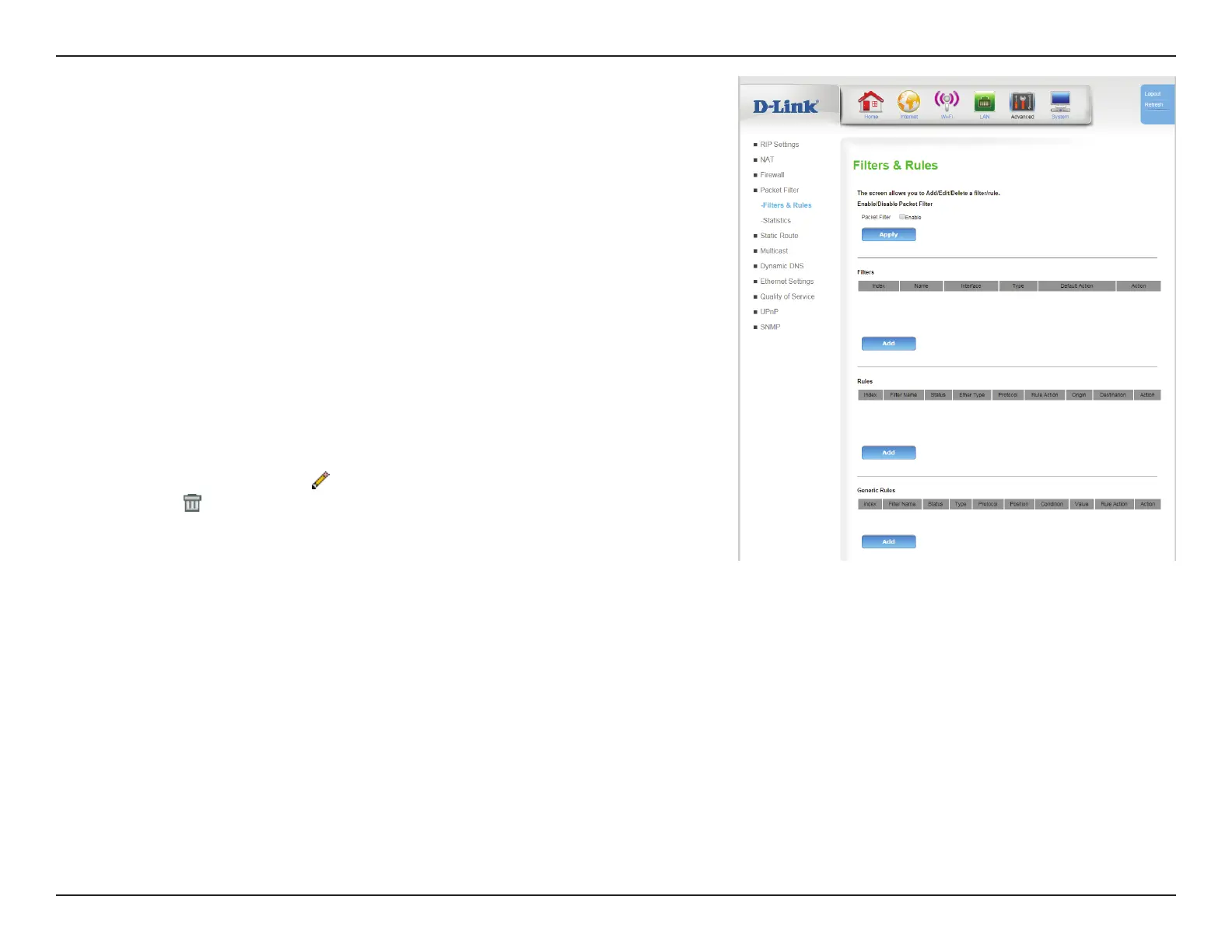 Click Add to add a new generic rule, described in Packet Filter -- Generic Rules