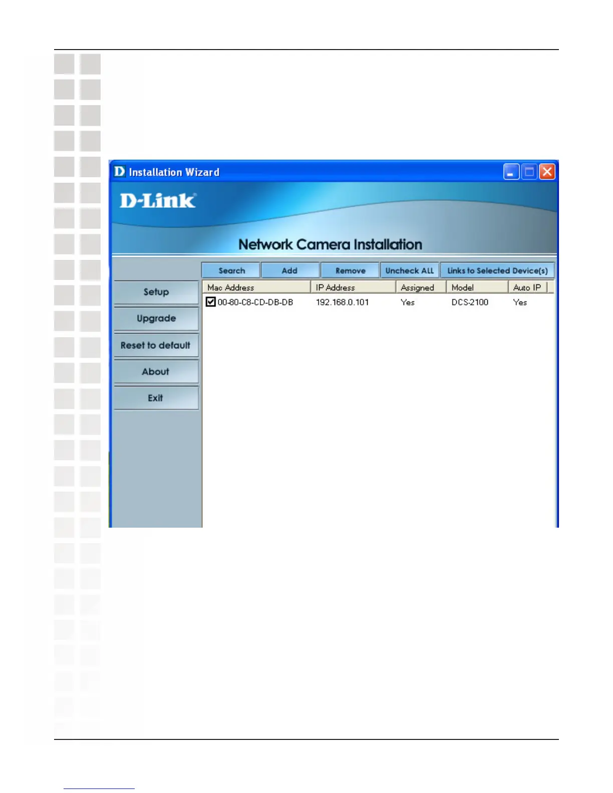 The Installation Wizard will now show a MAC address for the DCS-2100 and an IP