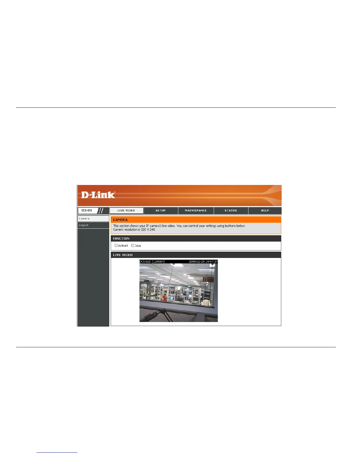 from the camera. You are able to view this screen from any PC running Internet Explorer on your LAN.