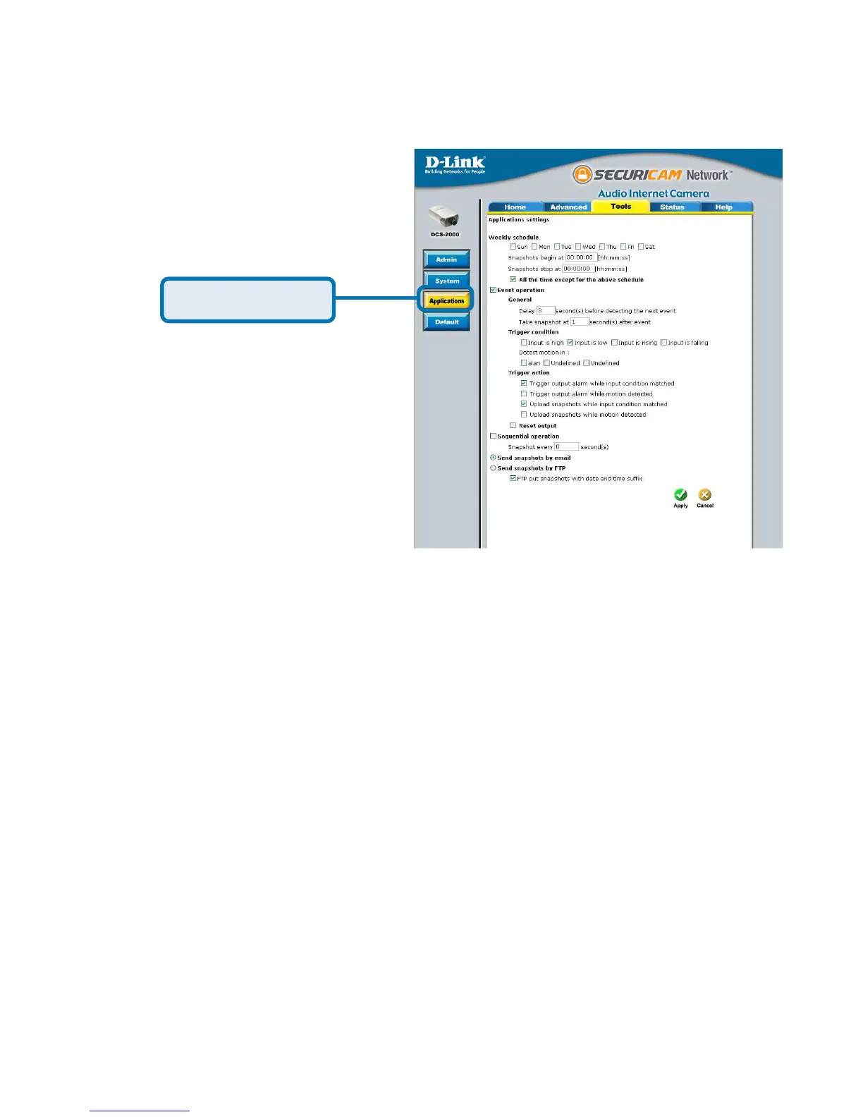 snapshots to be sent to your e-mail account or FTP server when triggered by a