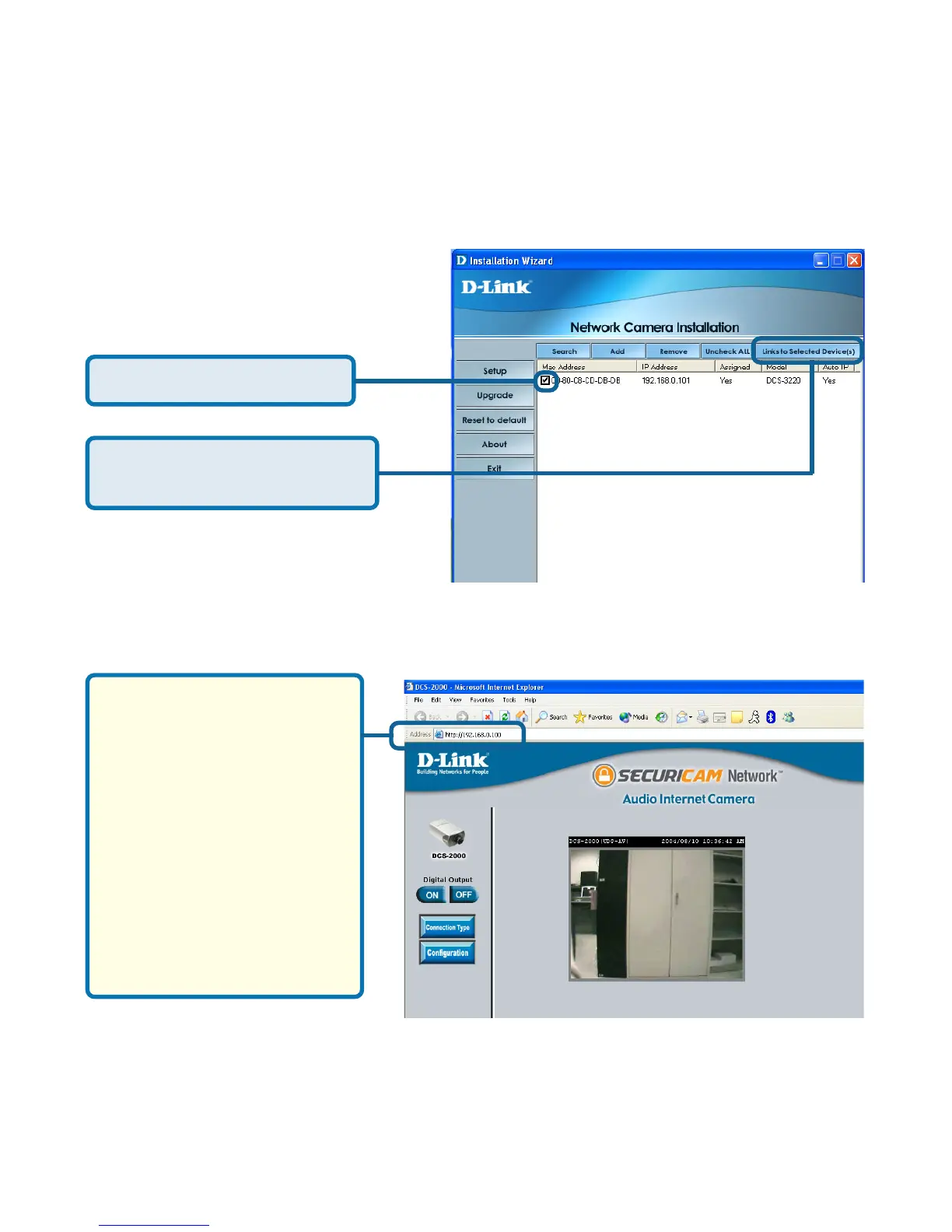 The Installation Wizard will now show a MAC address for the DCS-2000 and