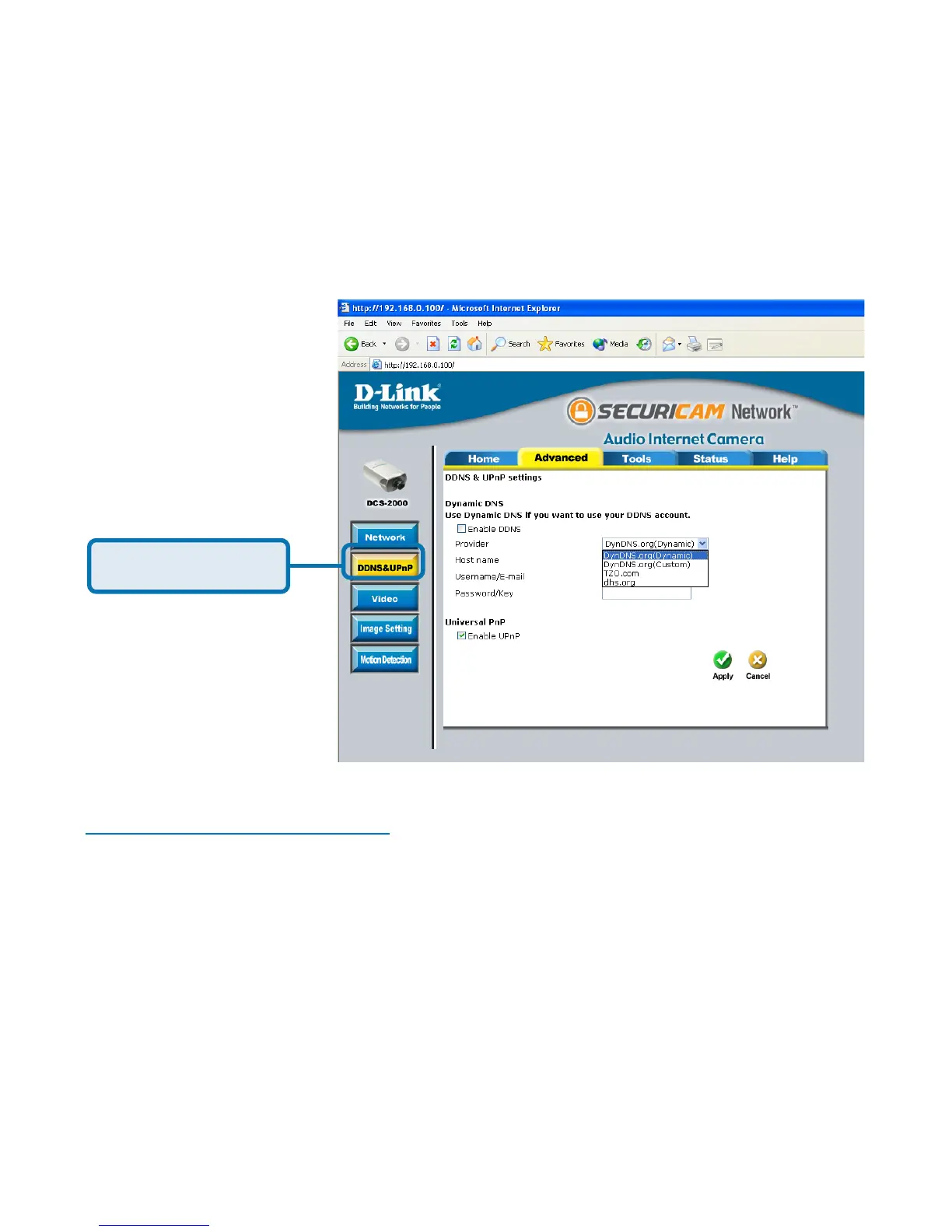 Click the DDNS & UPnP button from the Configuration screen to access DDNS