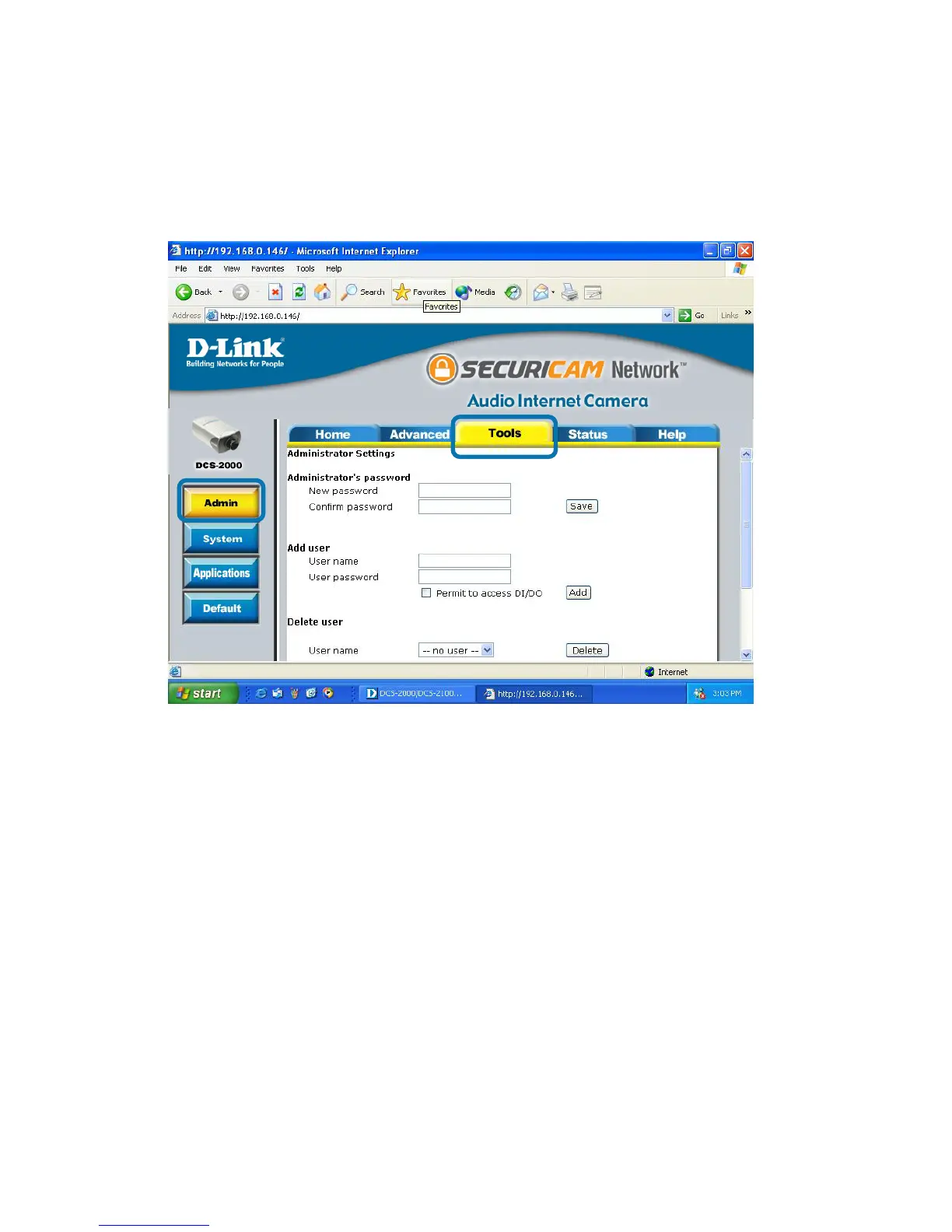 The DCS-2000 is manufactured without any passwords by default. This allows