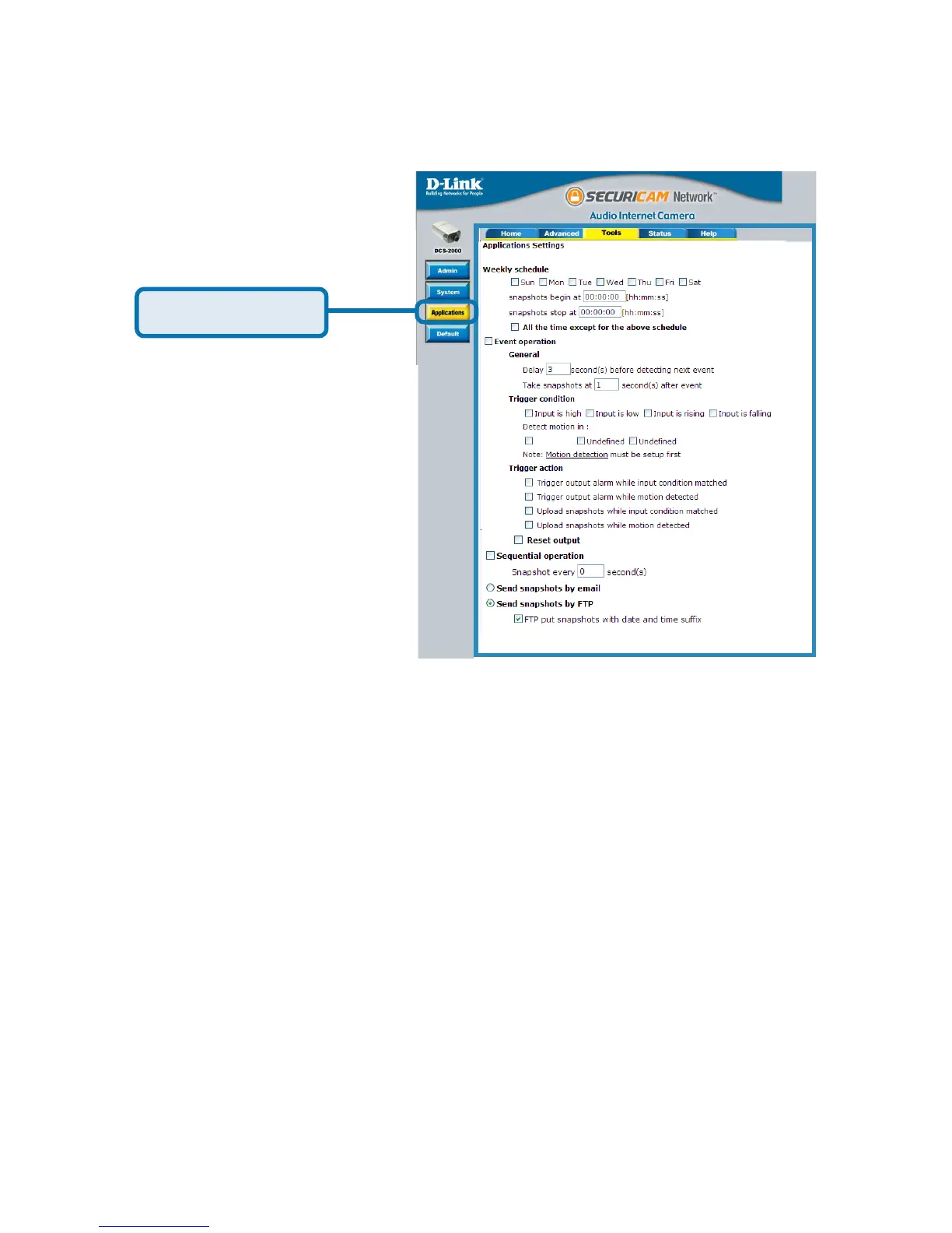 7 Click “Send snapshots by FTP” and check “FTP put snapshots with