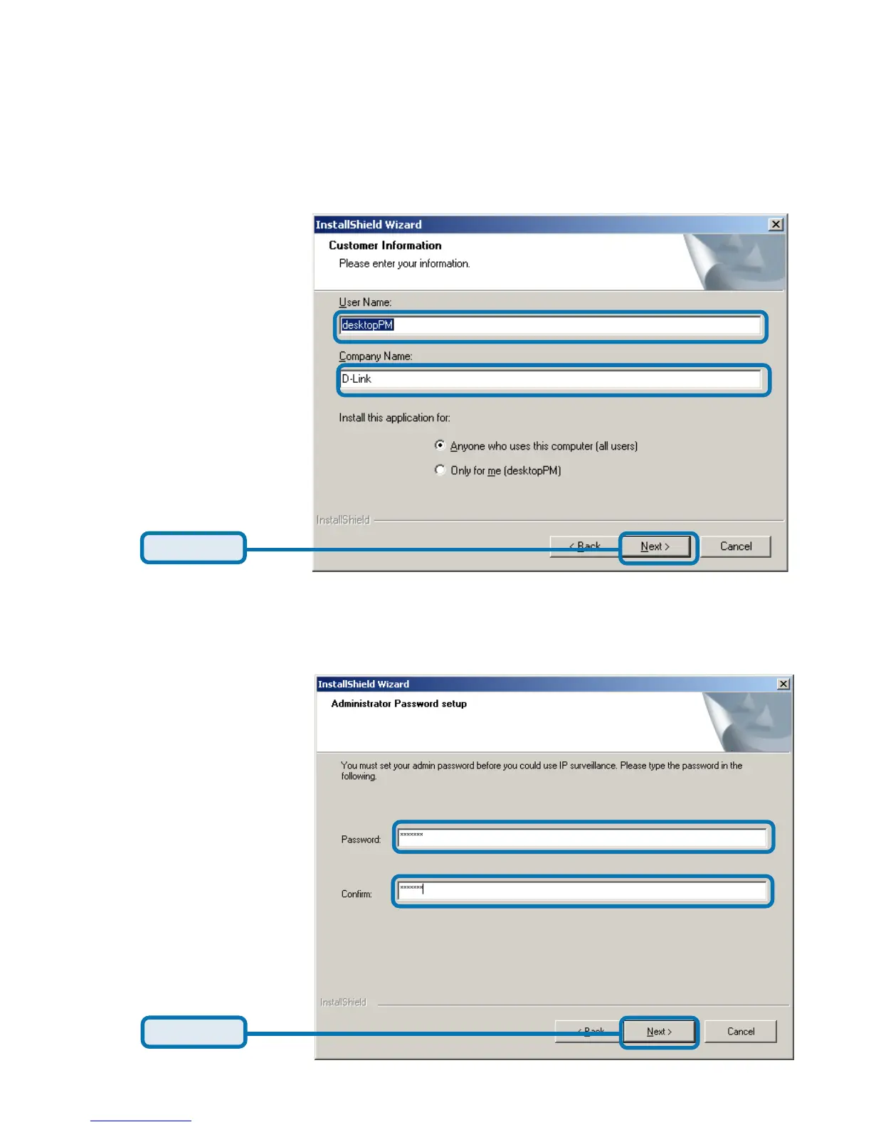 confirm your password in the window shown in below. Click “Next” to continue.