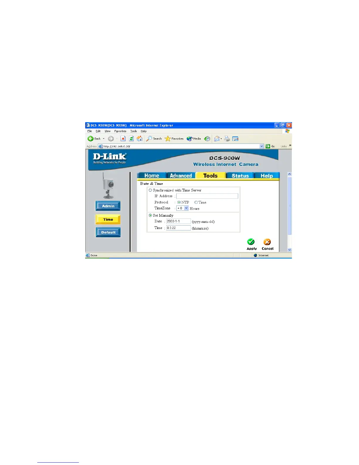 This is the default setting for the DCS-900W. Using a time server with your camera is