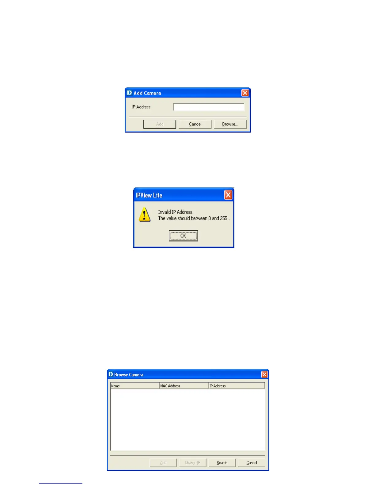 to notify you of the error. To add cameras in IPView Lite, check that you have your