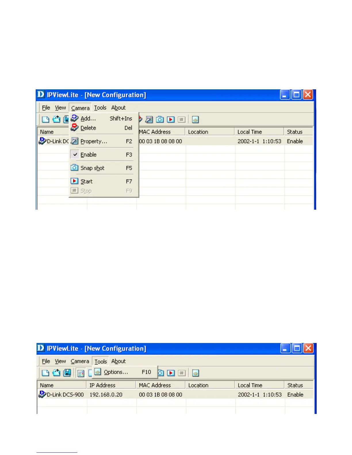 Cameras for viewing. The Camera menu also allows you to Delete a camera, manage