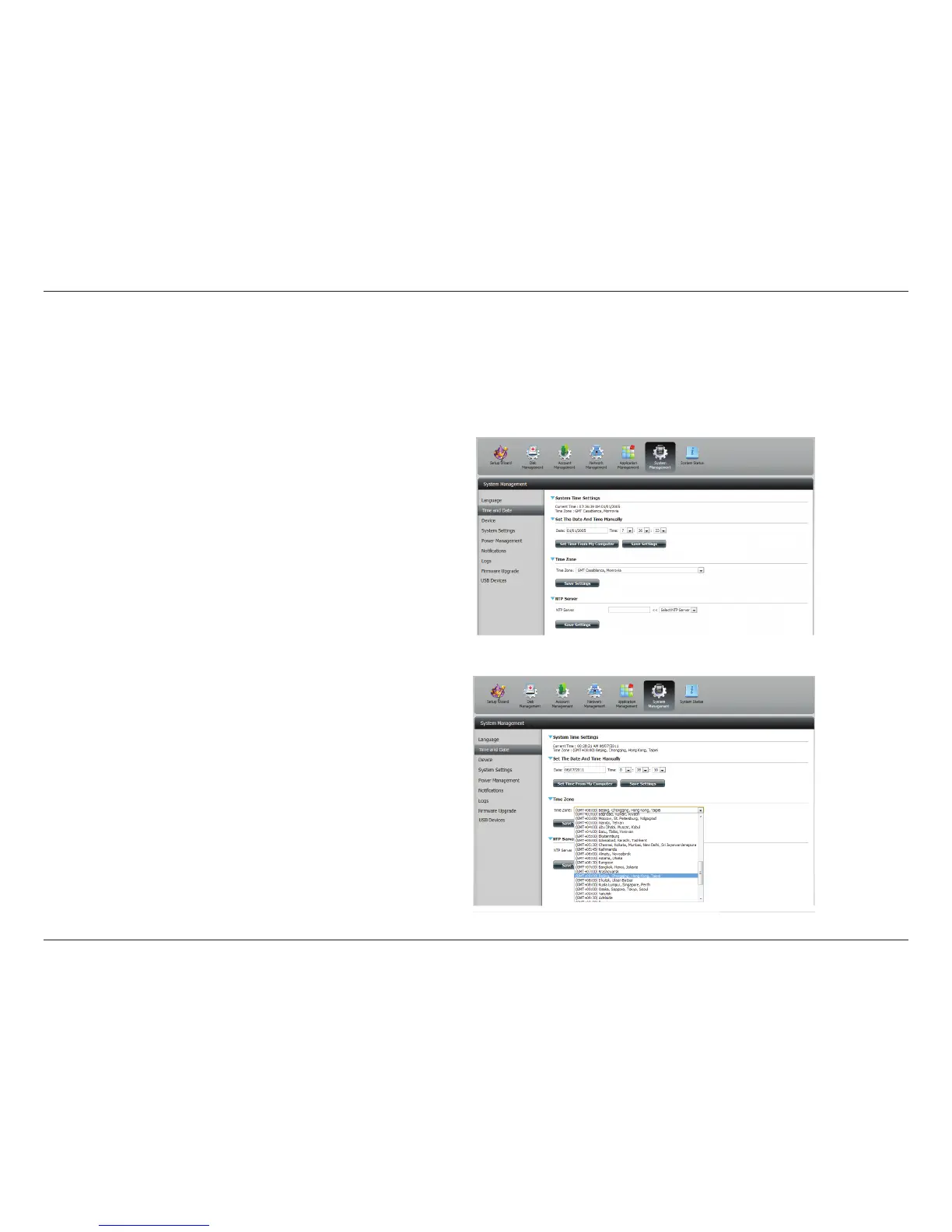 this section you can set the time zone that you are in, and set the NTP (Network Time Protocol) Server in order to periodically update your system