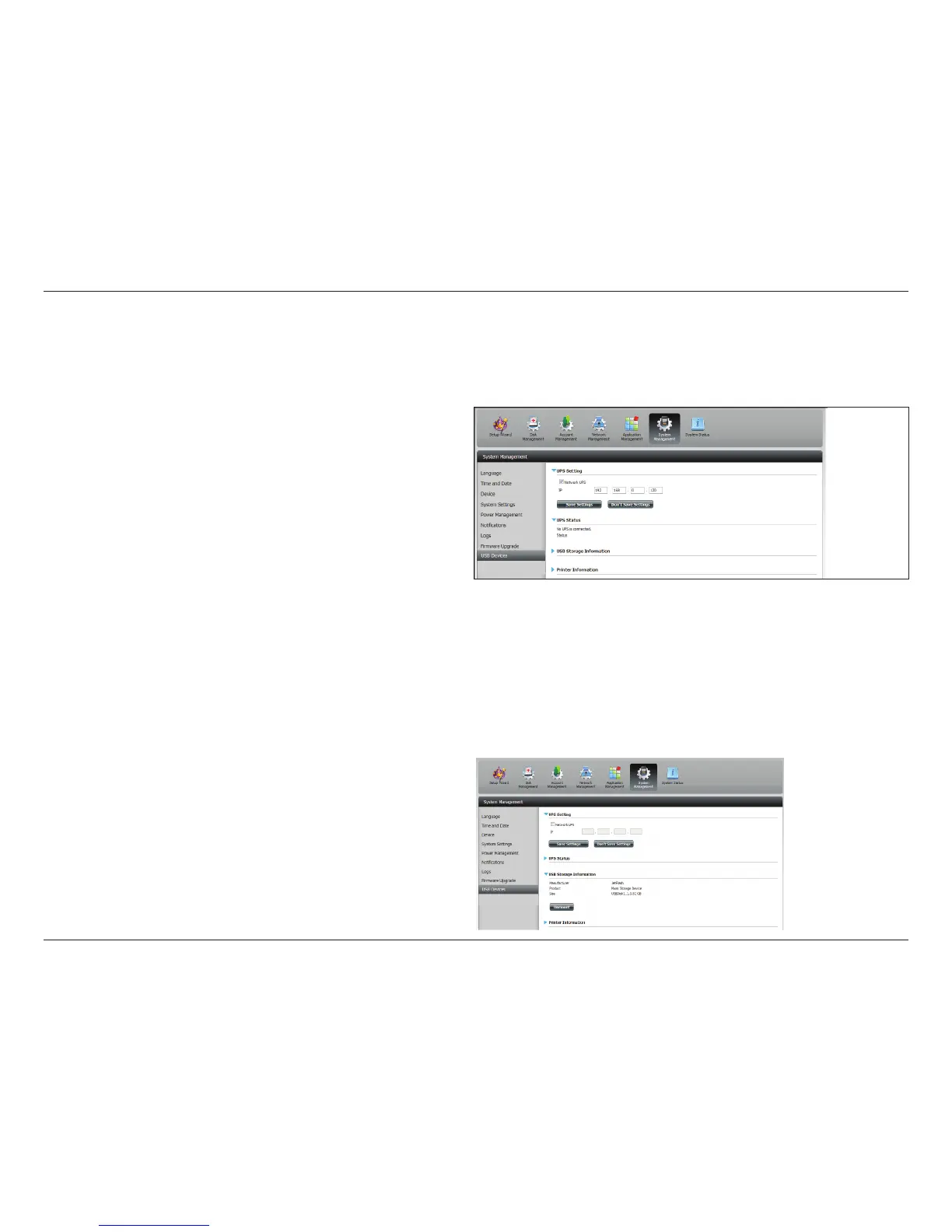 to enter the IP address(es) of the network UPS slaves to notify them in the event of a power failure. For more details, refer to the UPS Connectivity