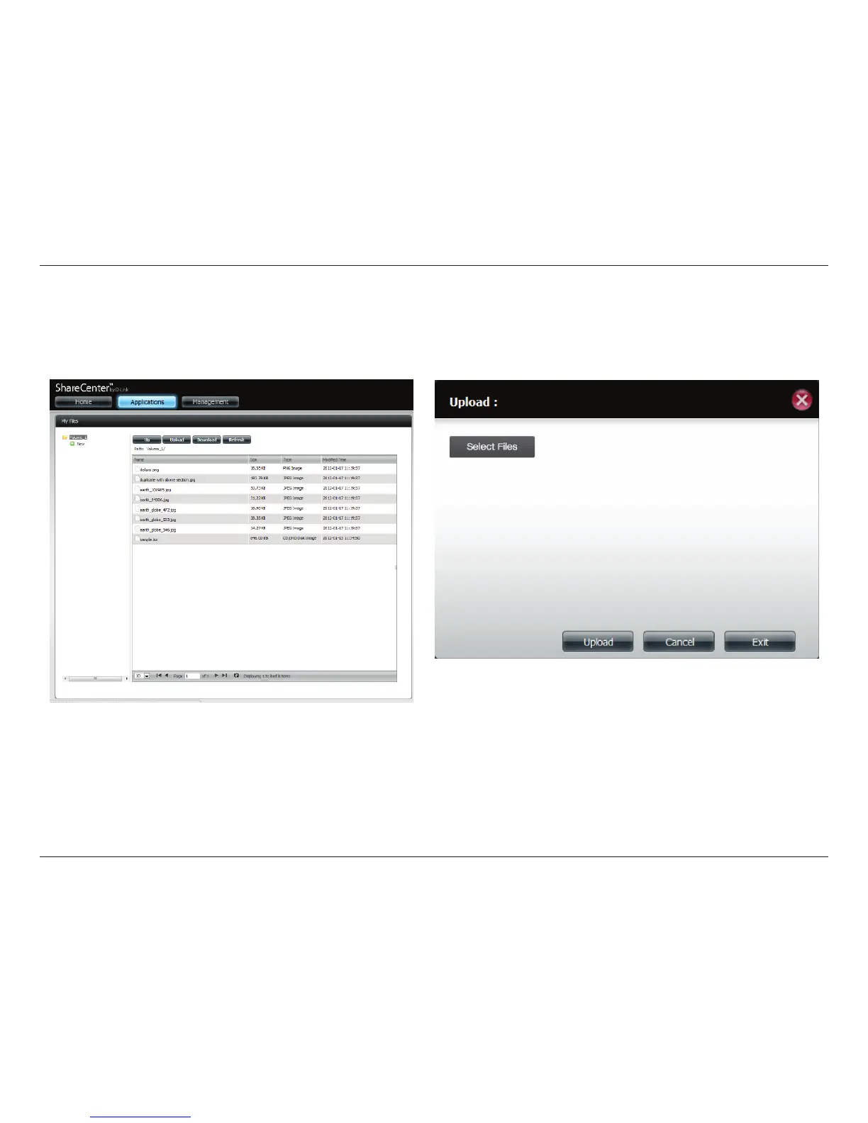 To upload more les to the volume you have selected, click the Upload button. Click the Select Files button to nd les on your computer to upload