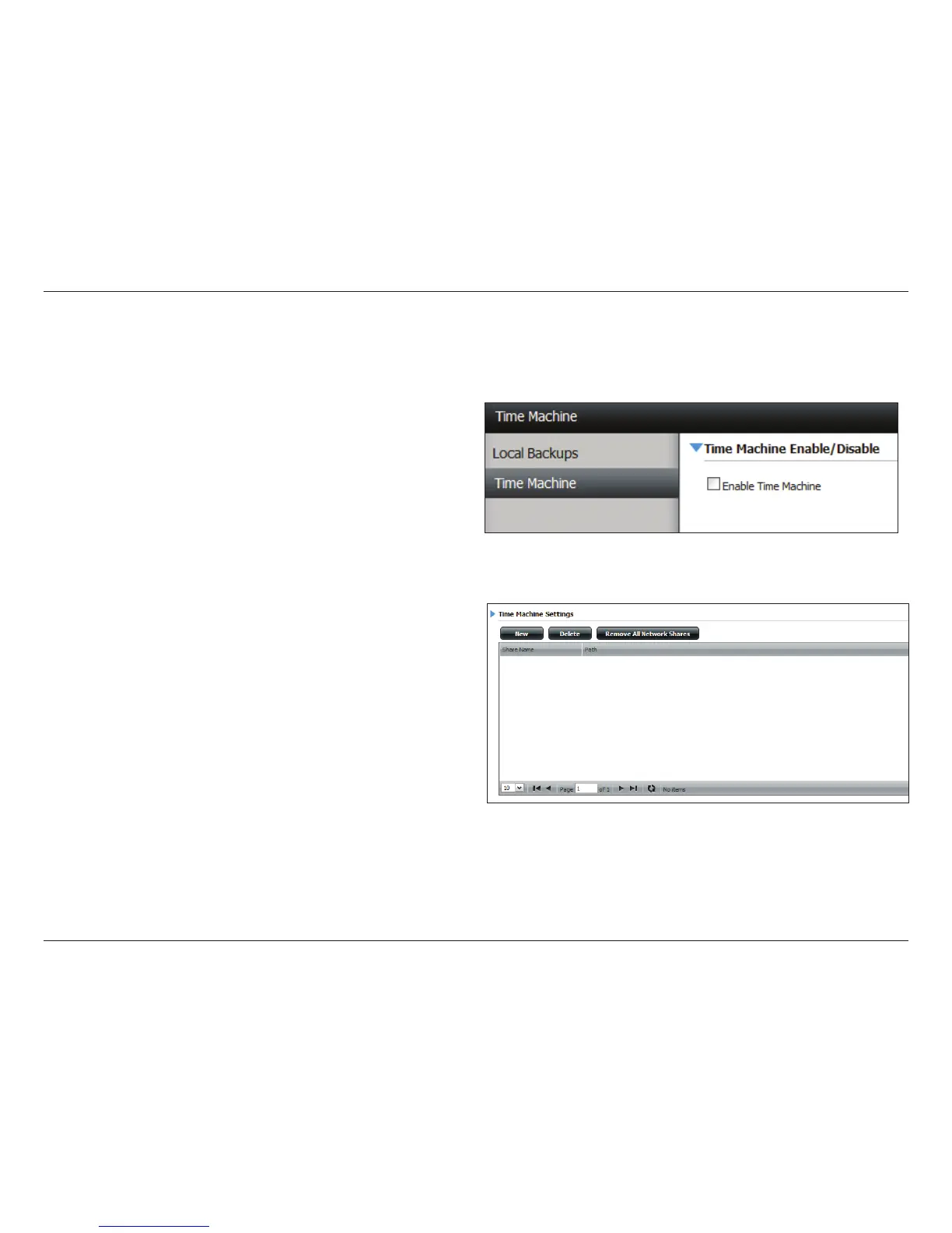 This section allows the user to congure the ShareCenter so that it becomes a backup destination in the Mac OS® X Time Machine. In order to use