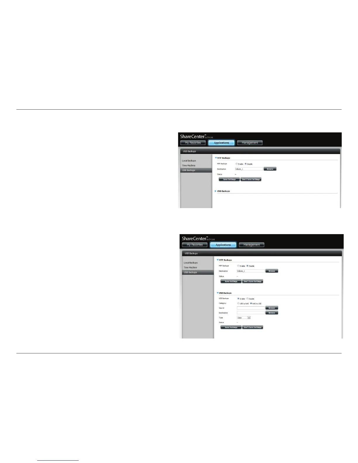 device to the ShareCenter) or NAS to USB (backup from