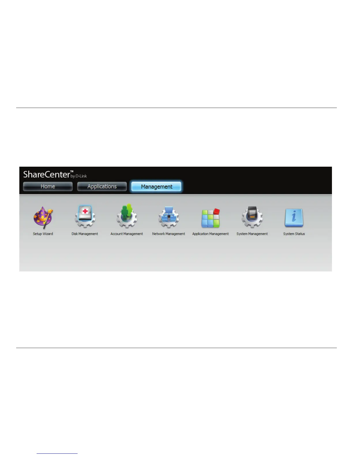 The Management tab contains the Setup Wizard, Disk Management, Account Management, Network Management, Application Management,