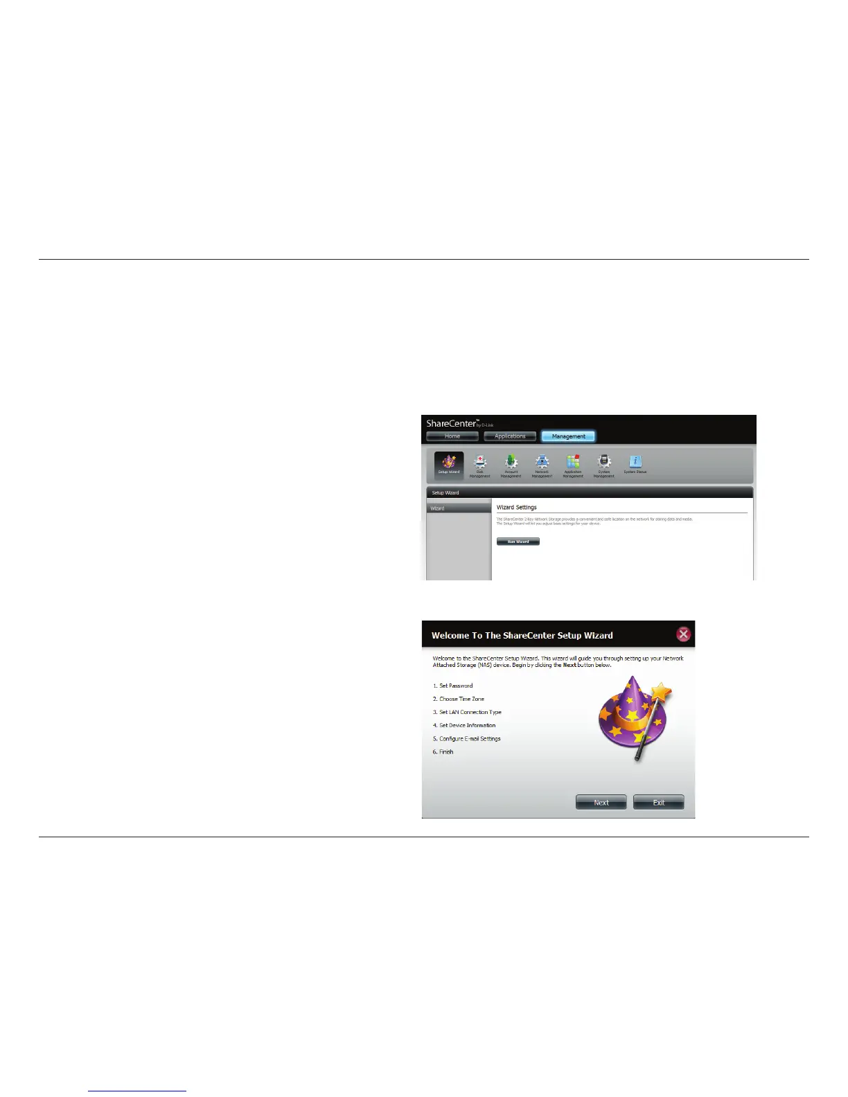 The ShareCenter has a Setup Wizard that allows you to quickly congure some of the basic device settings. Click the Setup Wizard icon to start