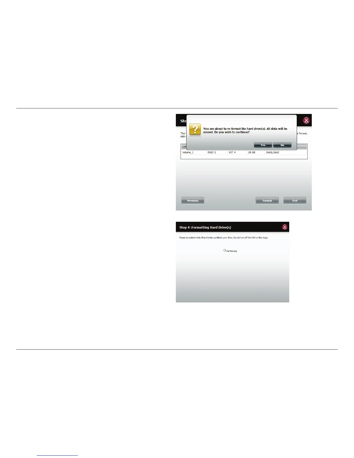 takes place. Do not turn o your NAS during this process.