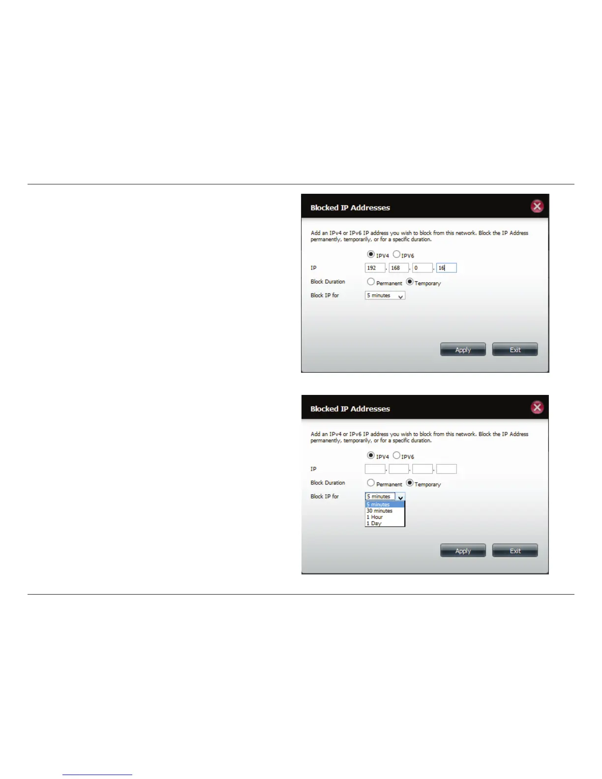 IP address permanently or Temporary if you wish to set a time