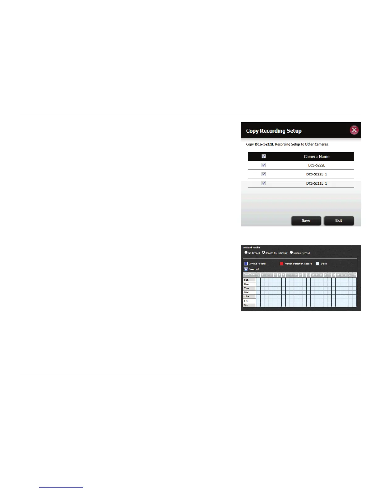 Check the boxes of the cameras you wish to copy recording settings to, and click Save to