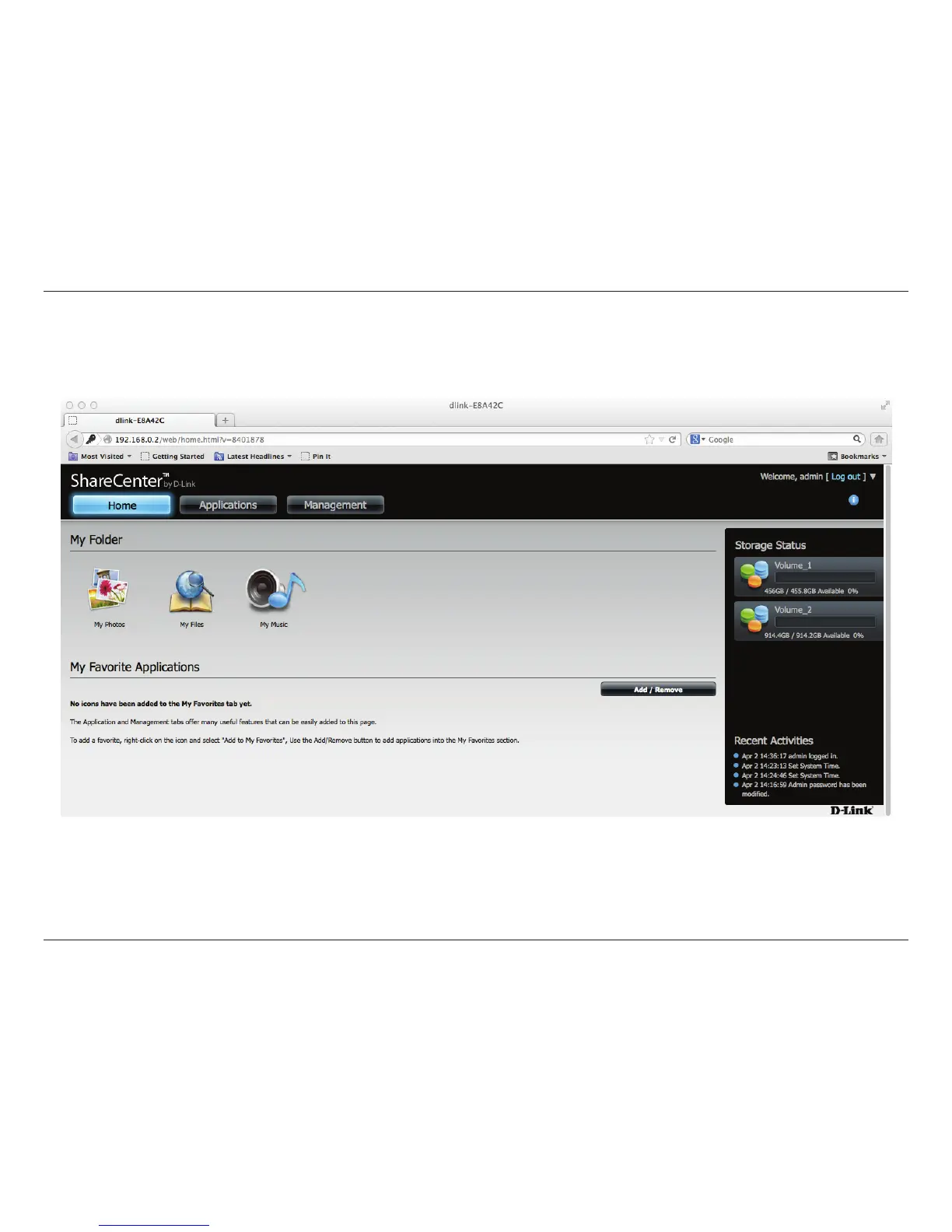 The My Favorites Application section allows users to add applications to the Home section so users can easily access these applications. Follow