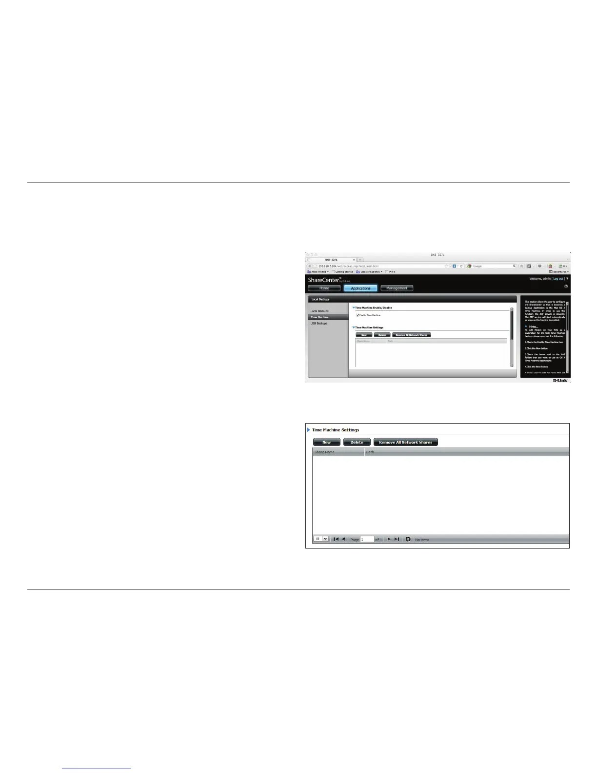 This section allows the user to congure the ShareCenter™ so that it becomes a backup destination in the Mac OS® X Time Machine. In order to
