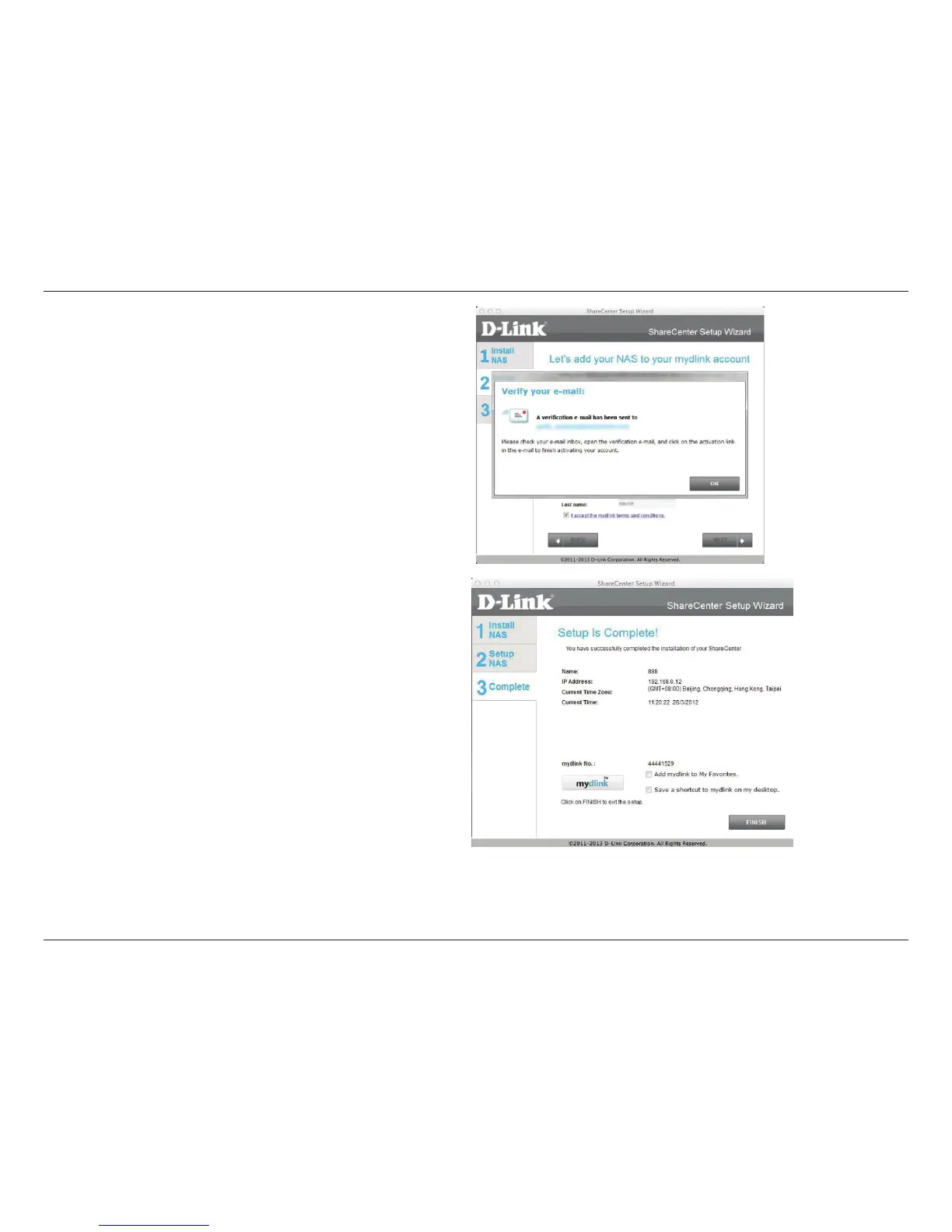 the Add mydlink to My Favorites checkbox, or