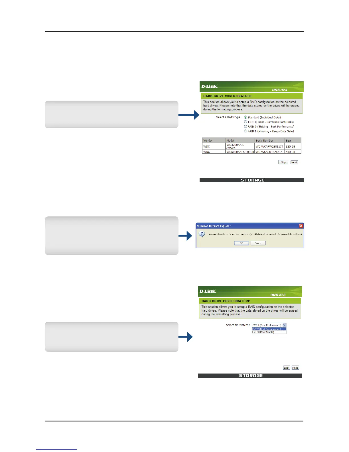 當您第一次登入DNS-323 的網頁設定畫面時,您會被詢問要使用何種格式