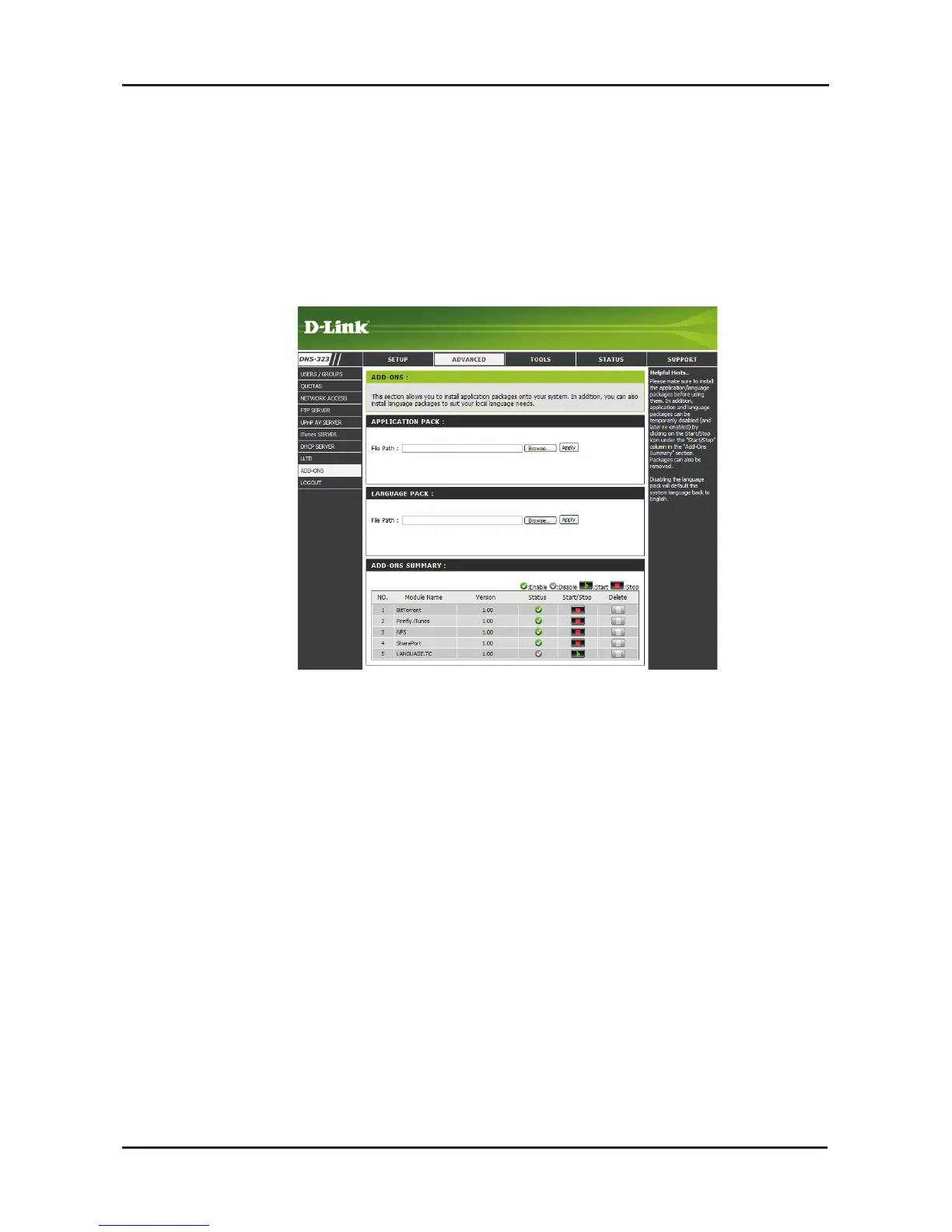 Pasang paket bahasa dan aplikasi untuk meningkatkan fungsi DNS-323