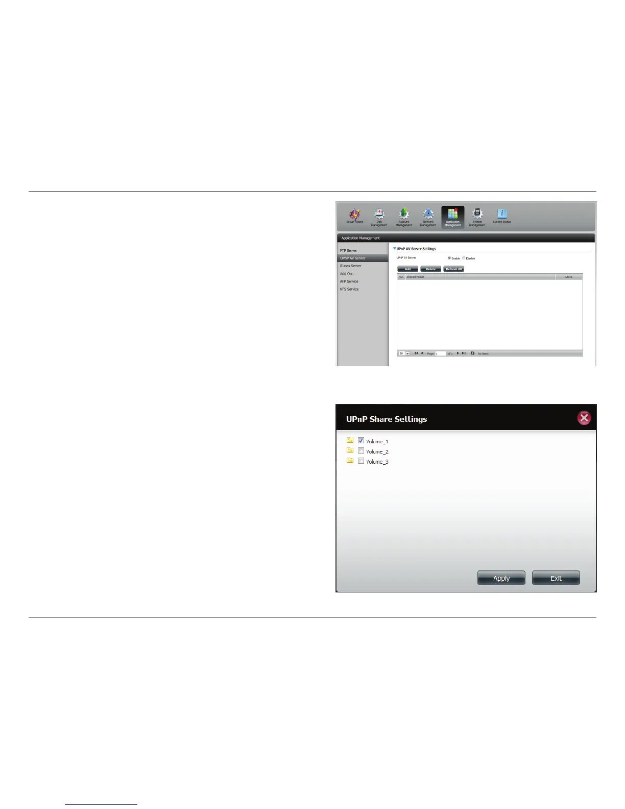 Click Application Management, then UPnP server.