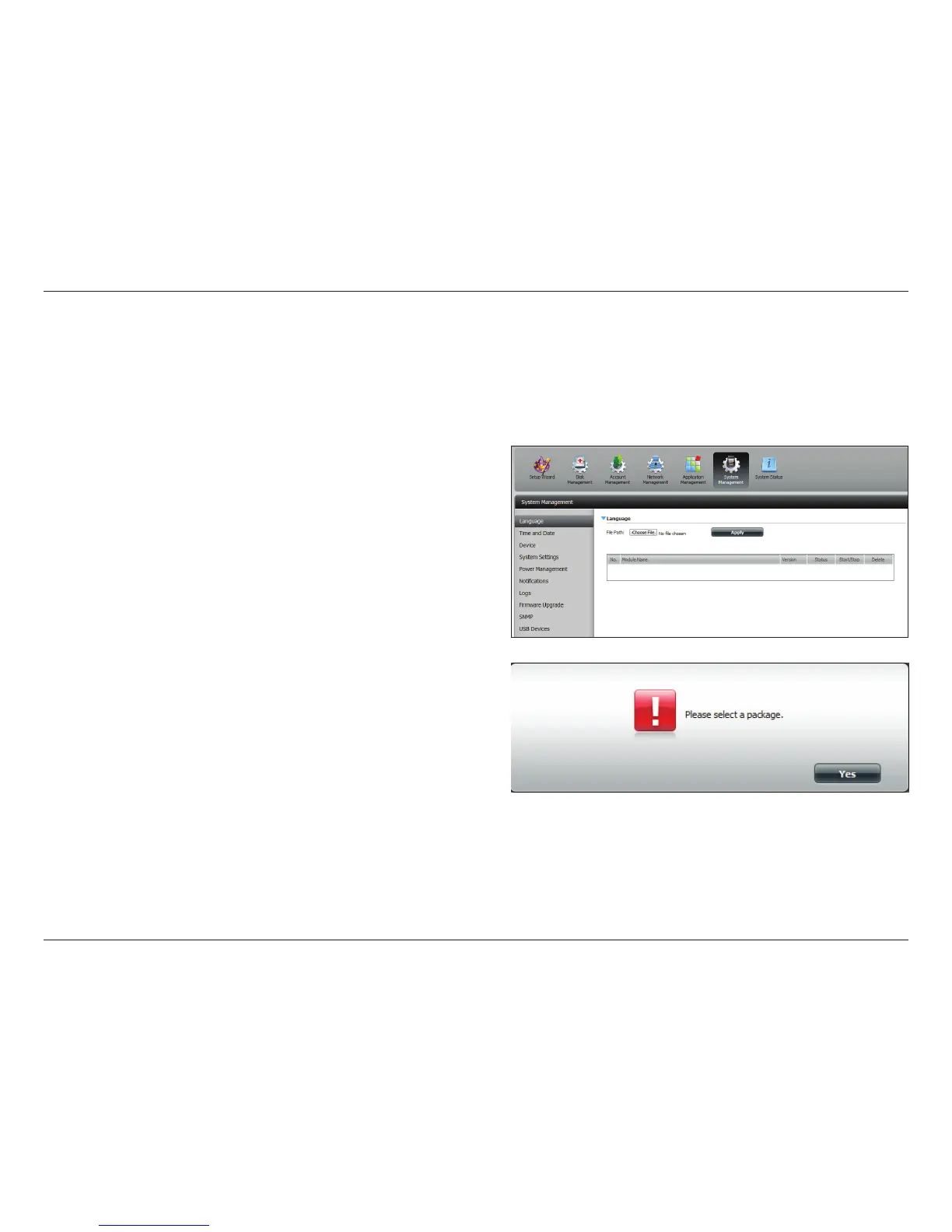 The language packs help users customize the DNS-325 to their specic region. Download your language pack from the D-Link website or the CD