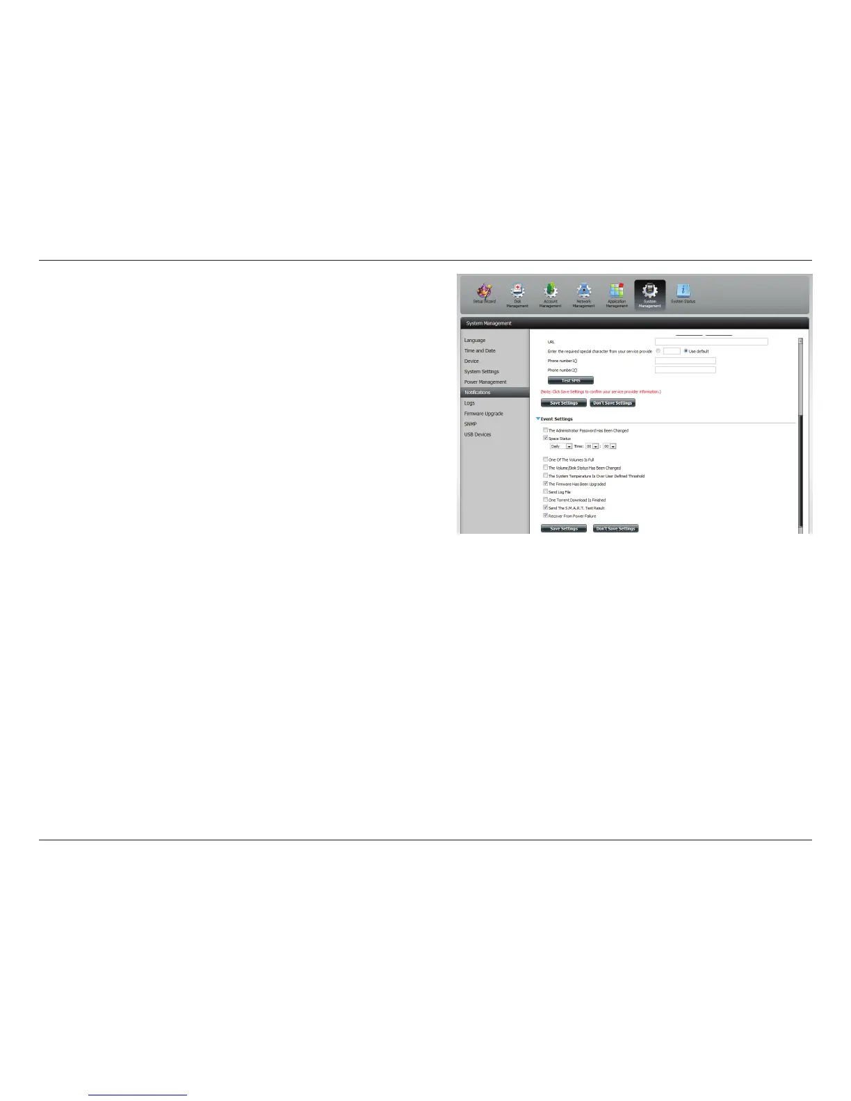 Click System Management > Notications, and then Event Settings.