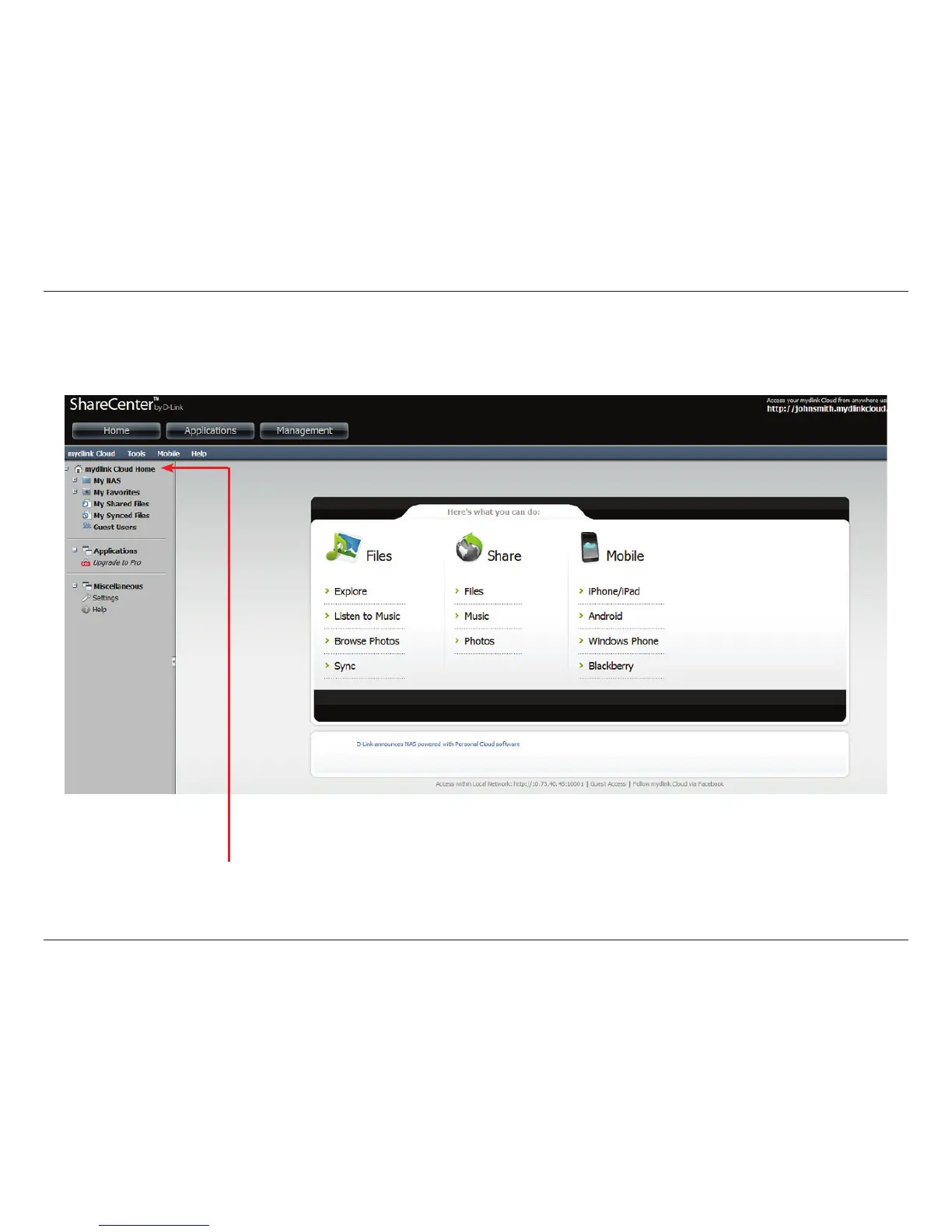 If you wish to return to the main section click the mydlink Cloud Home link to the left of the window in the side panel.