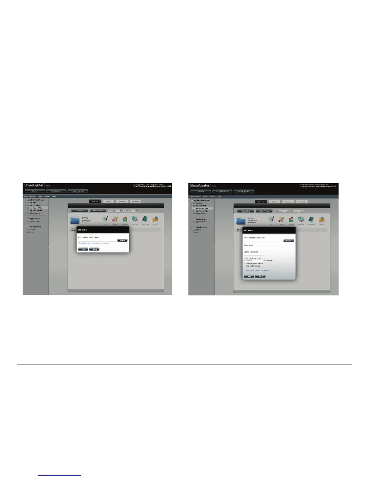 Create a share folder/le by clicking the Share File button. Click Additonal options to see a wider choice of selections.