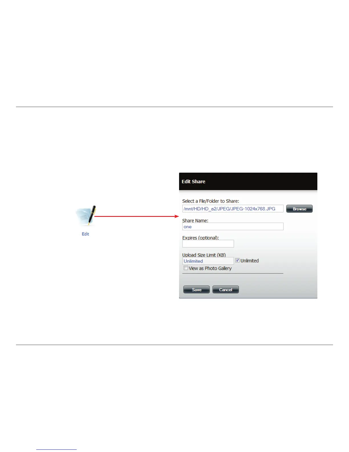 In the Share List click the Edit icon next to the le/folder you wish to edit. The Edit Share screen comes up and provides you with several