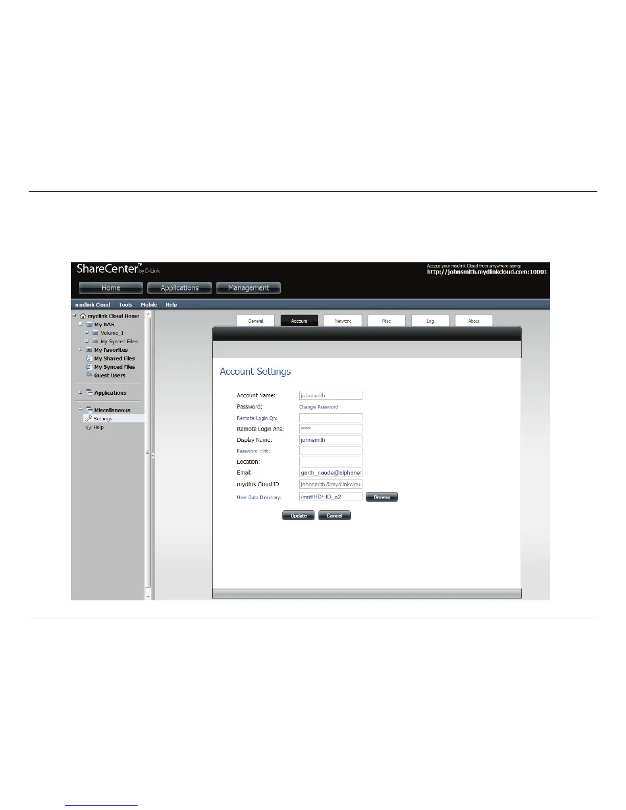 mydlink Cloud - Miscellaneous Settings - Accounts
